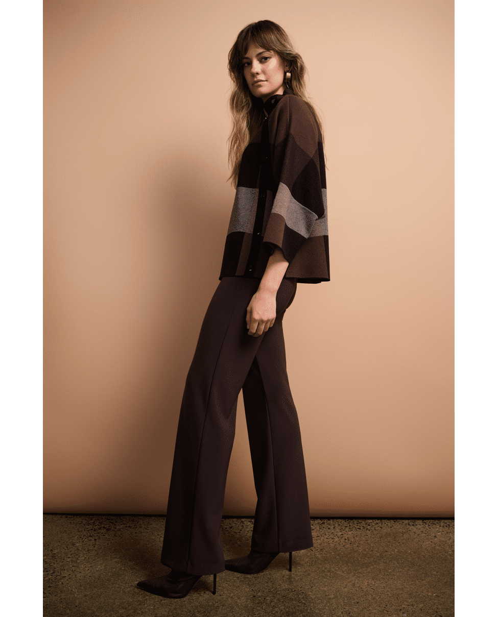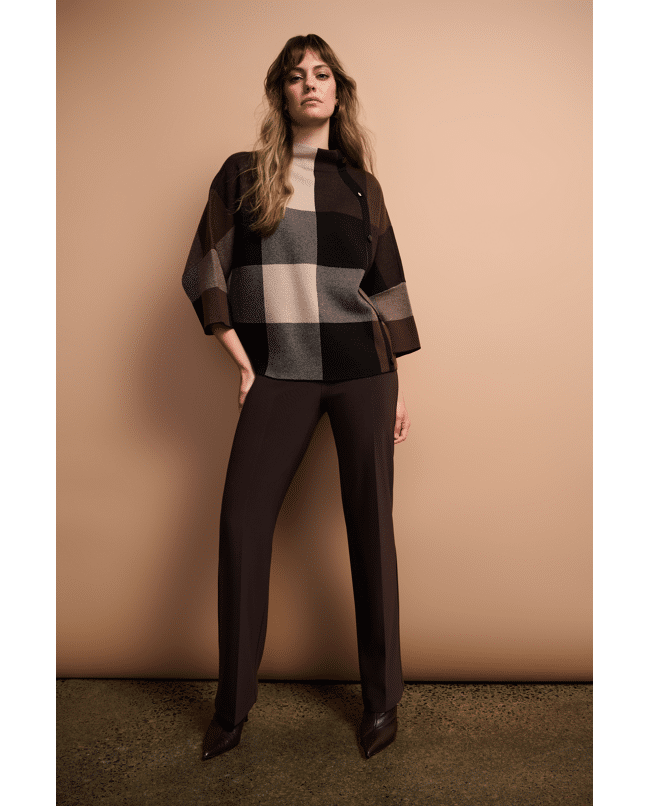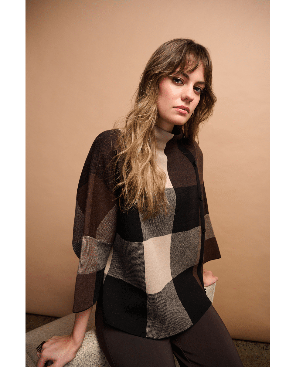 Het grafische ruitpatroon en de diagonale knoopsluiting geven deze top een unieke uitstraling die past bij iedere eigentijdse garderobe.