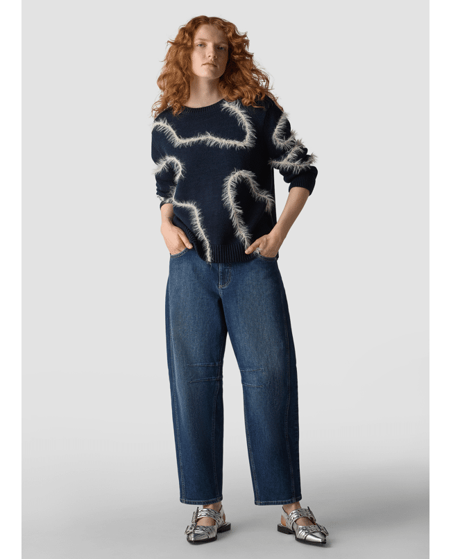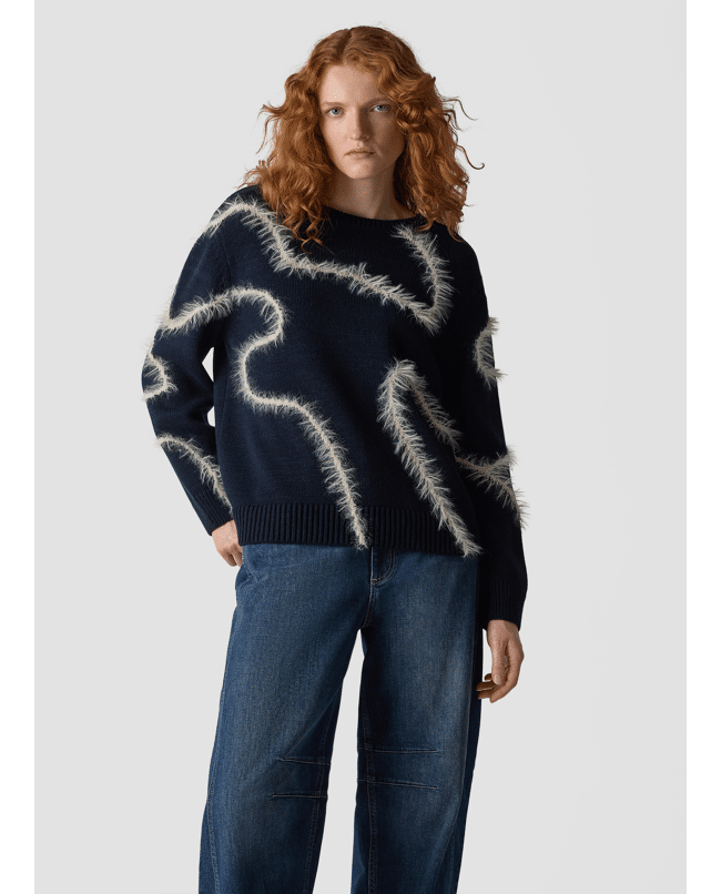 Gebreide damestrui van LeComte met fluffy slinger patroon, lange mouwen en ronde hals