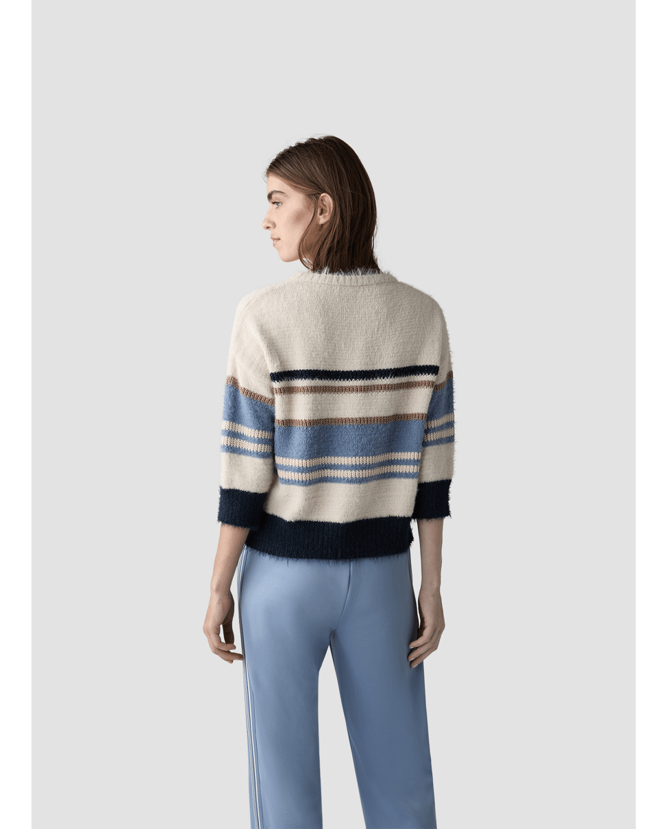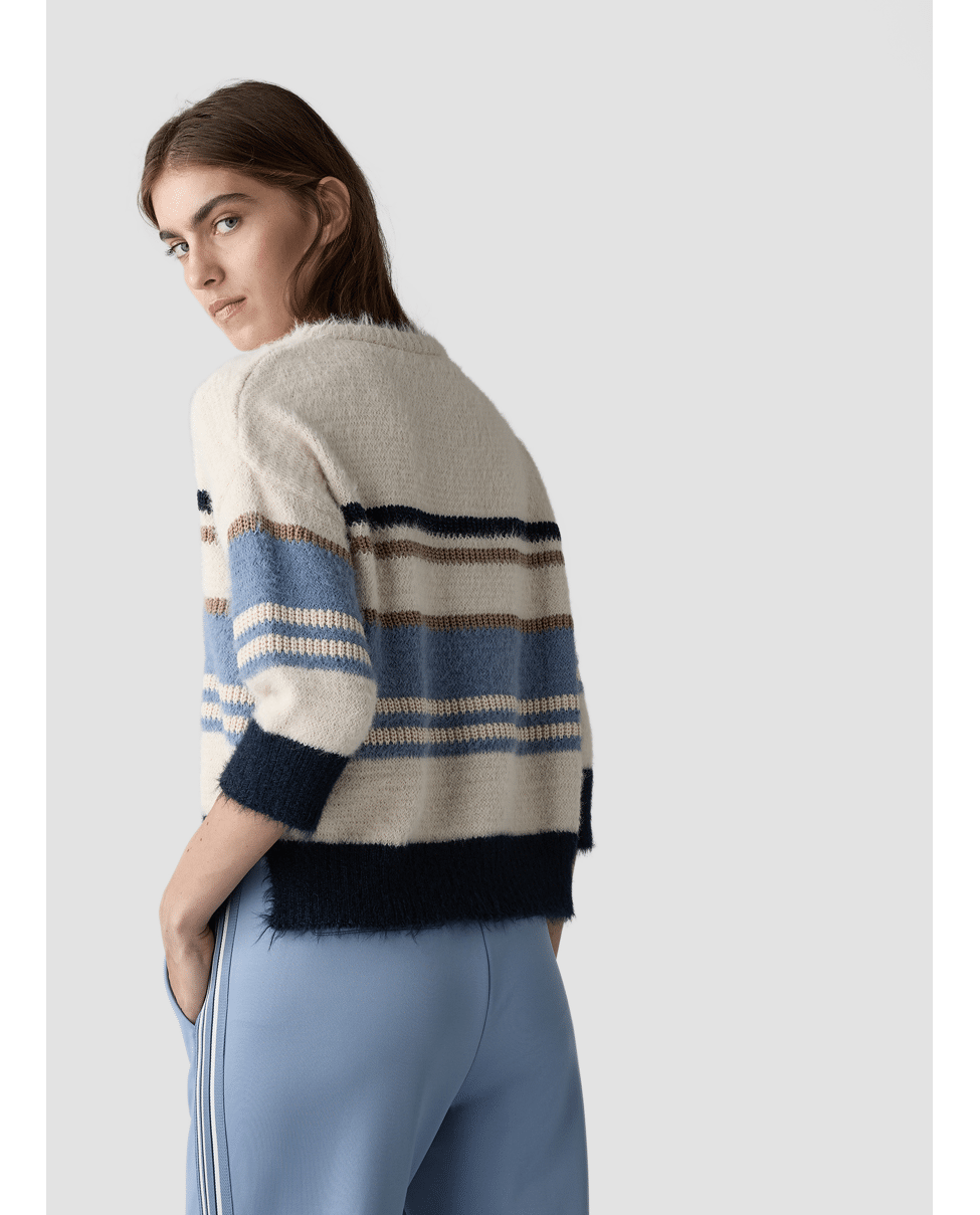 Gebreide damestrui van LeComte met strepen dessin, lange mouwen en ronde hals