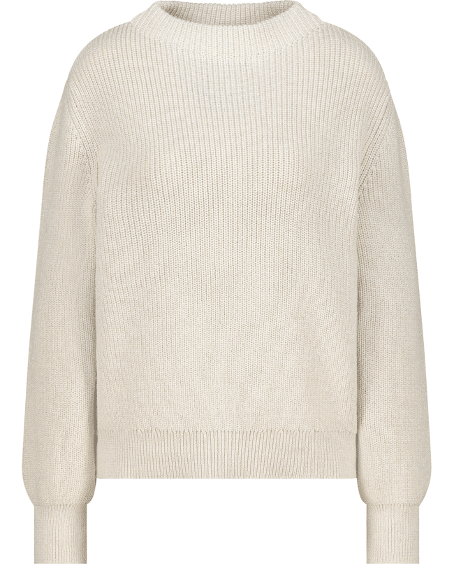 Deze gebreide trui is een comfortabele basic met een subtiele glans. Perfect voor frisse dagen waarop je stijlvol warm wilt blijven.