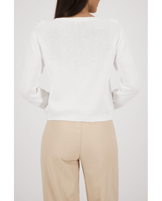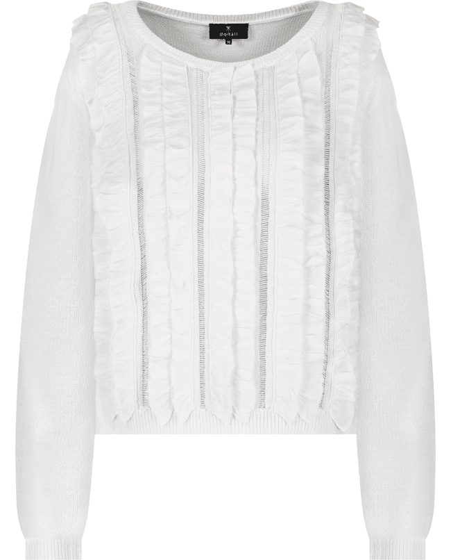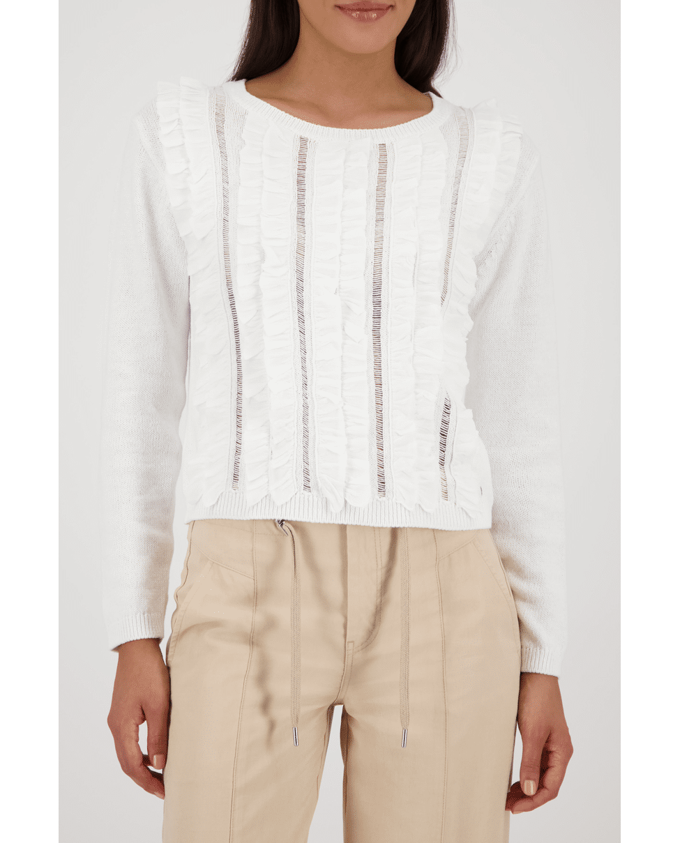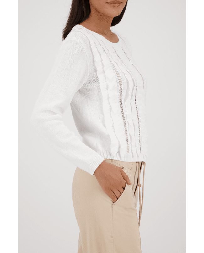 Gebreide trui van Monari met verticale volants en opengewerkte stroken