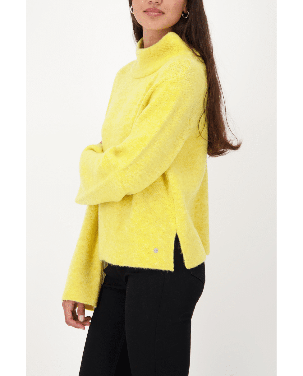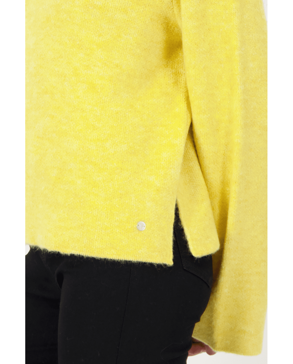 Deze trui met col en zijsplitten is een vrolijke toevoeging aan je herfstgarderobe. Ideaal voor dagen waarop je warm én opvallend gekleed wilt zijn.