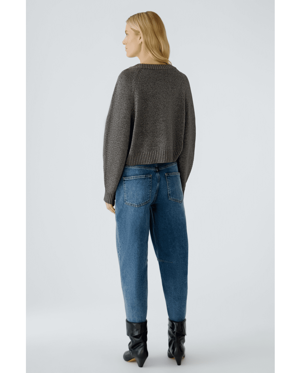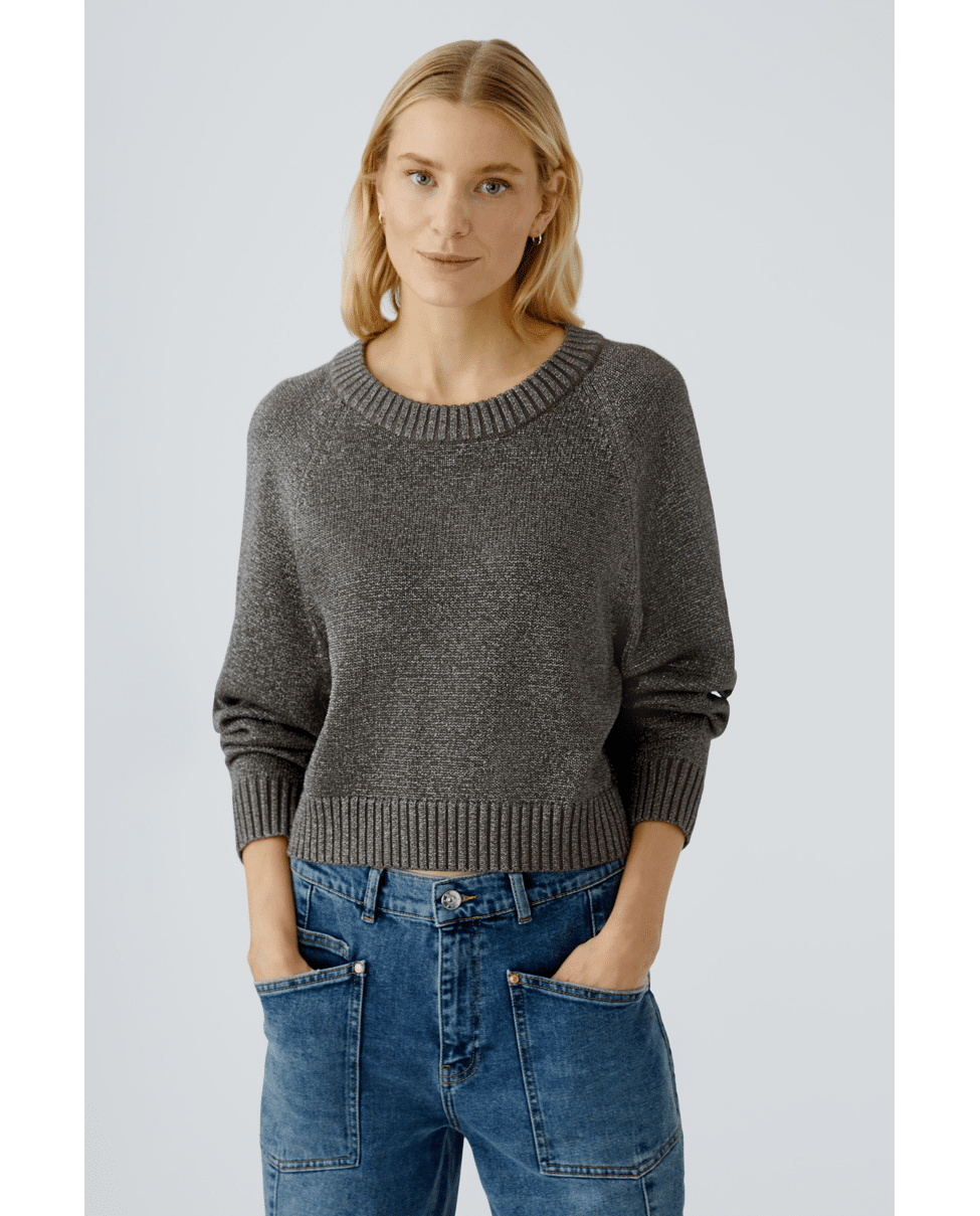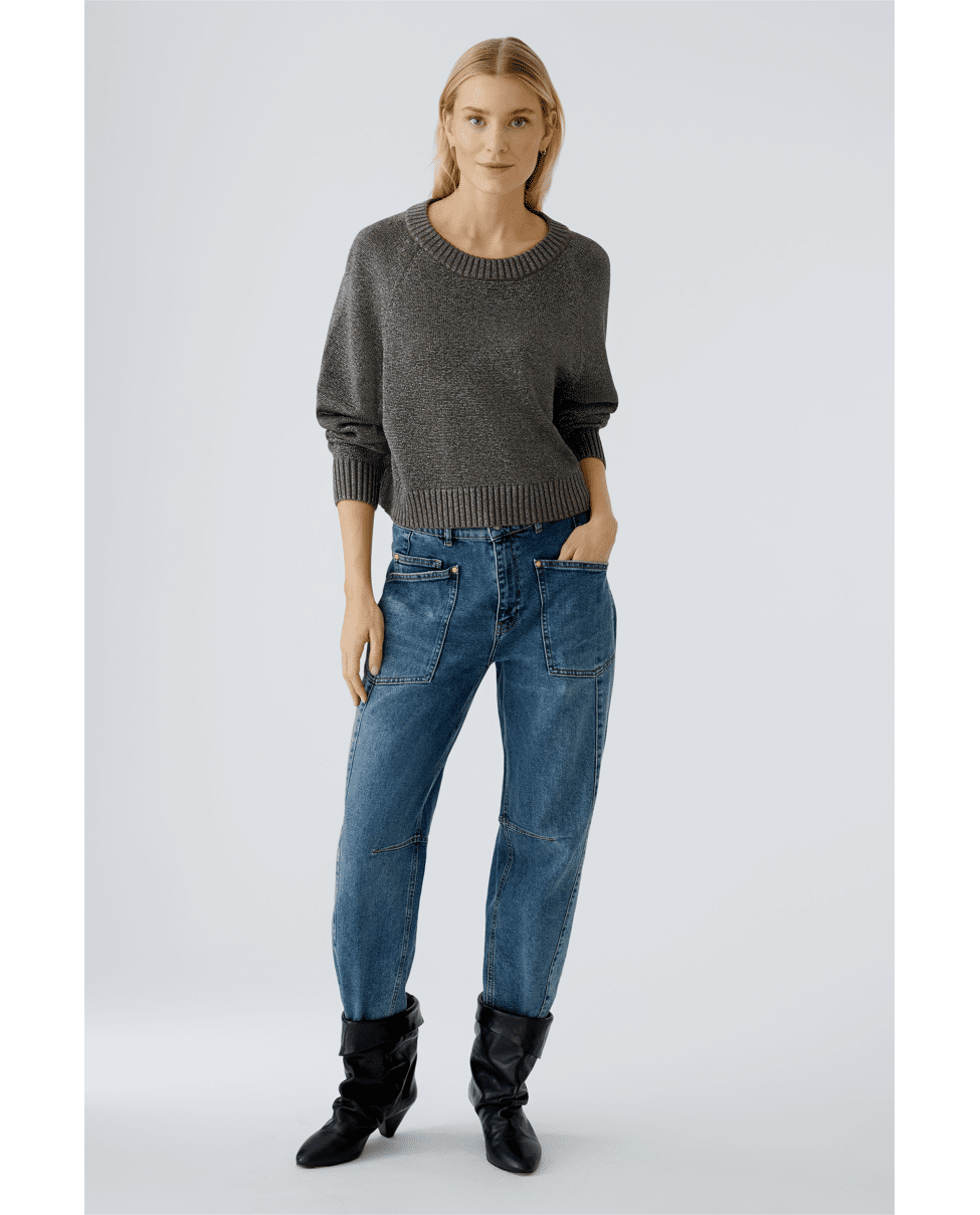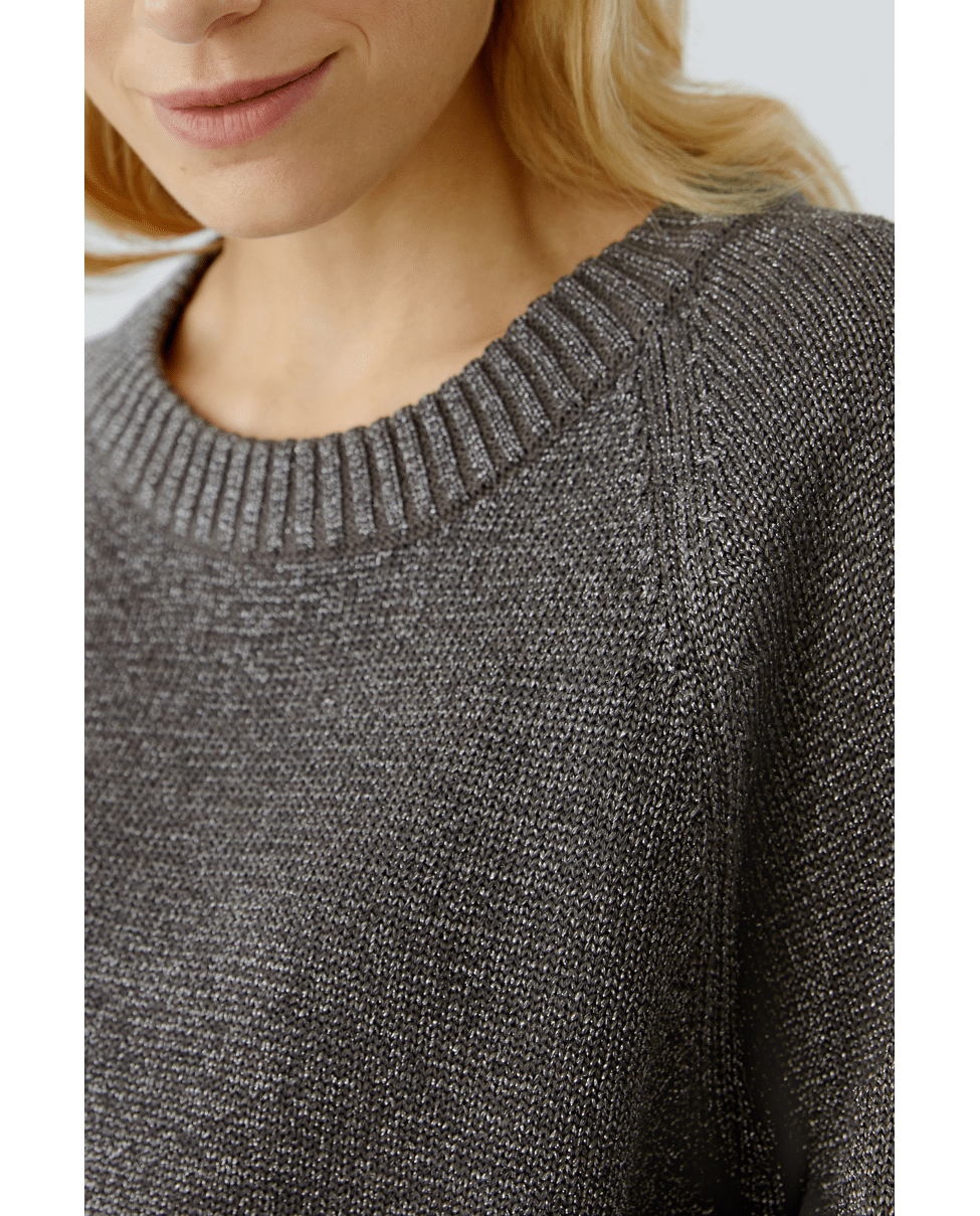 Gebreide damestrui van Oui met katoenmix, ronde hals, boxy snit en lange raglanmouwen