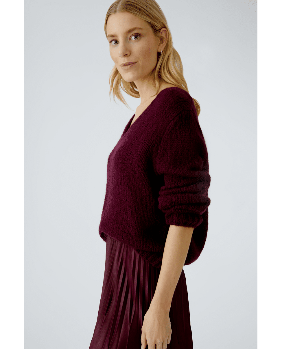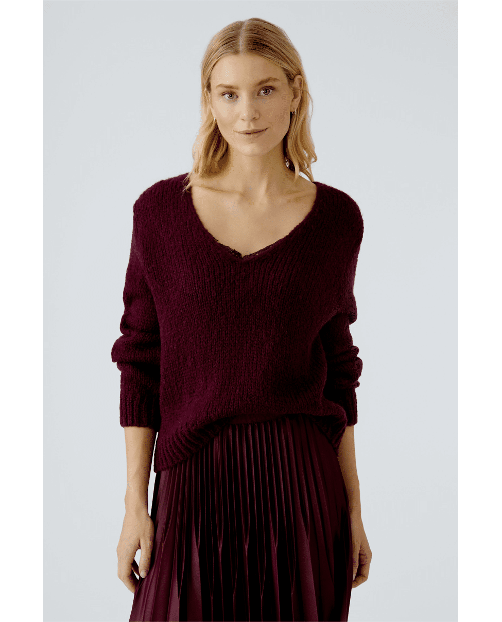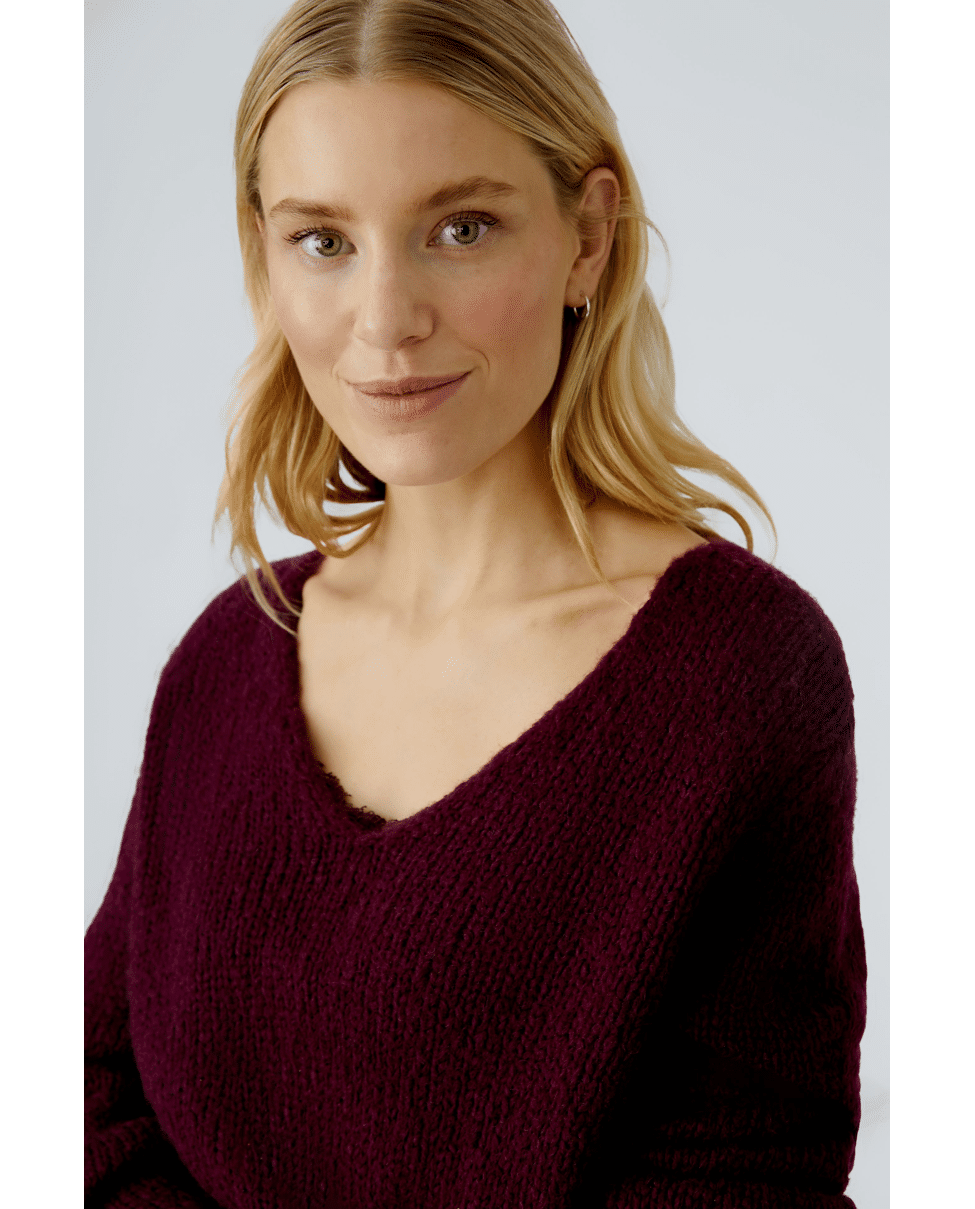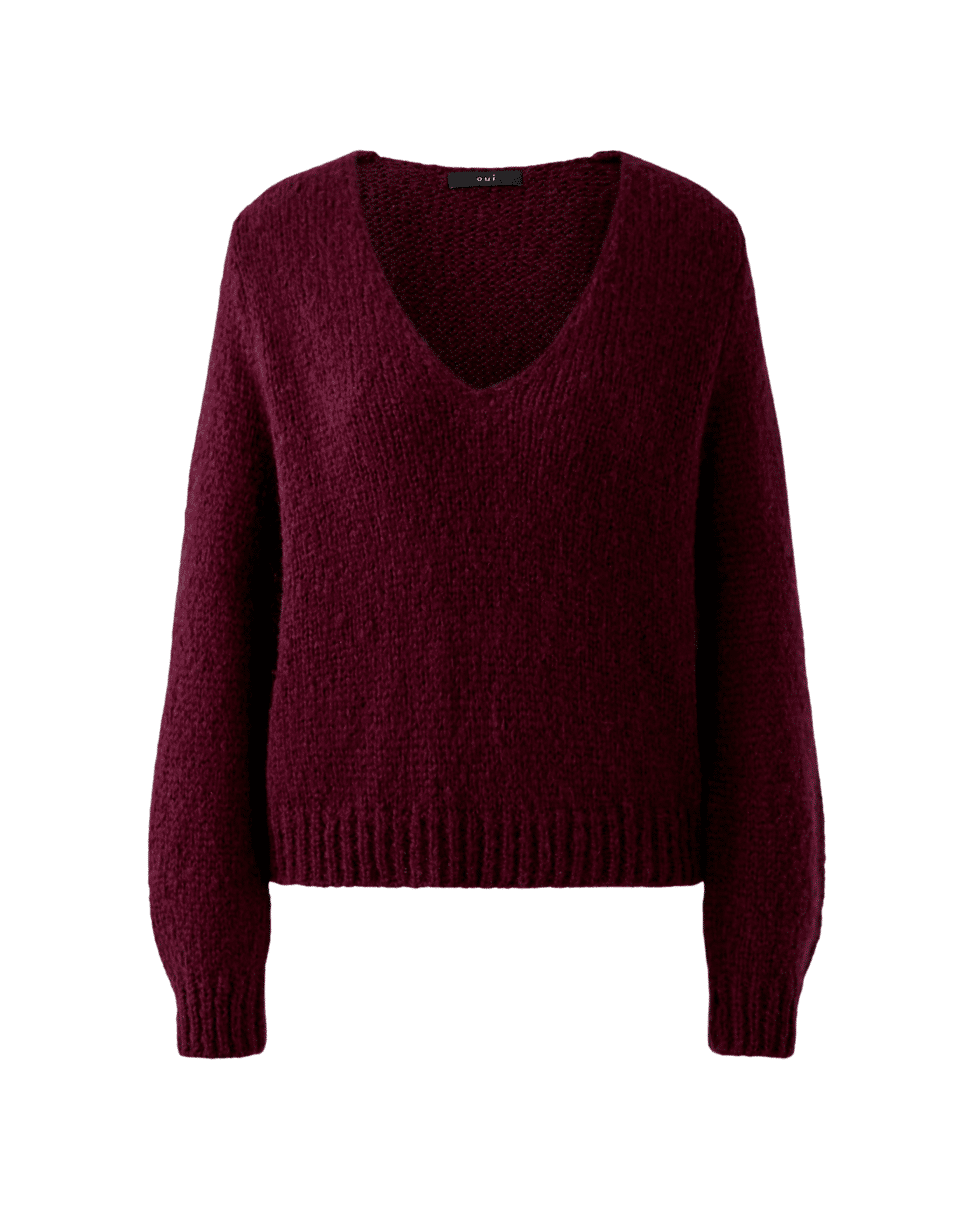 Gebreide damestrui van Oui met mohair, V-hals en lange mouwen