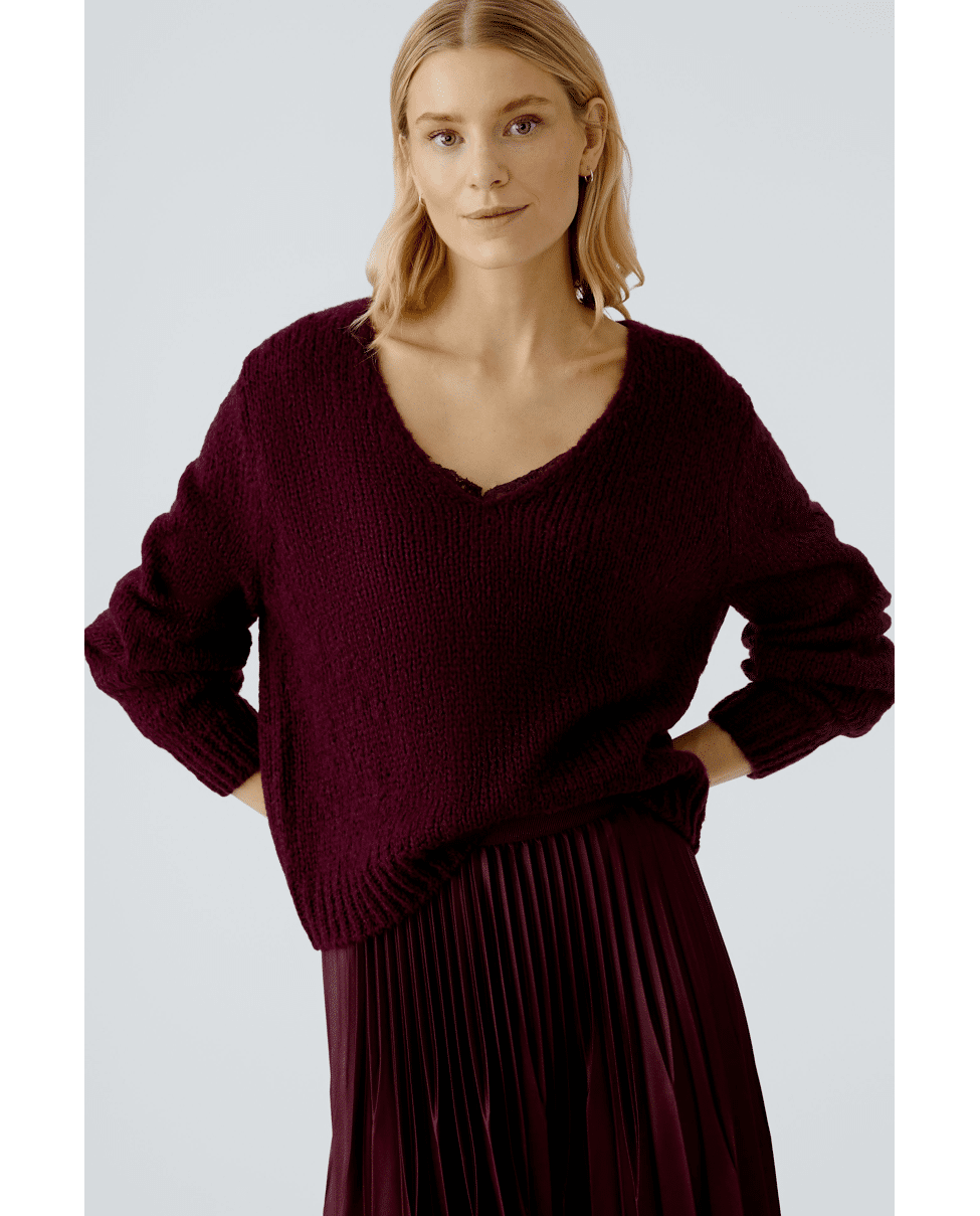 Deze gebreide trui van Oui is een warme essential voor het najaar. De zachte mix van wol en mohair maakt ‘m perfect voor koude dagen met stijl.