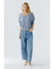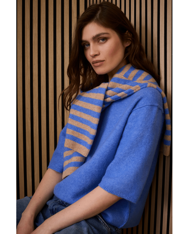 •Streeppatroon in camel blue