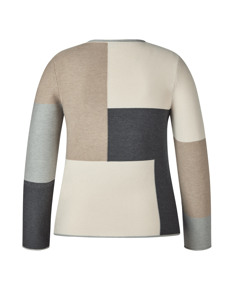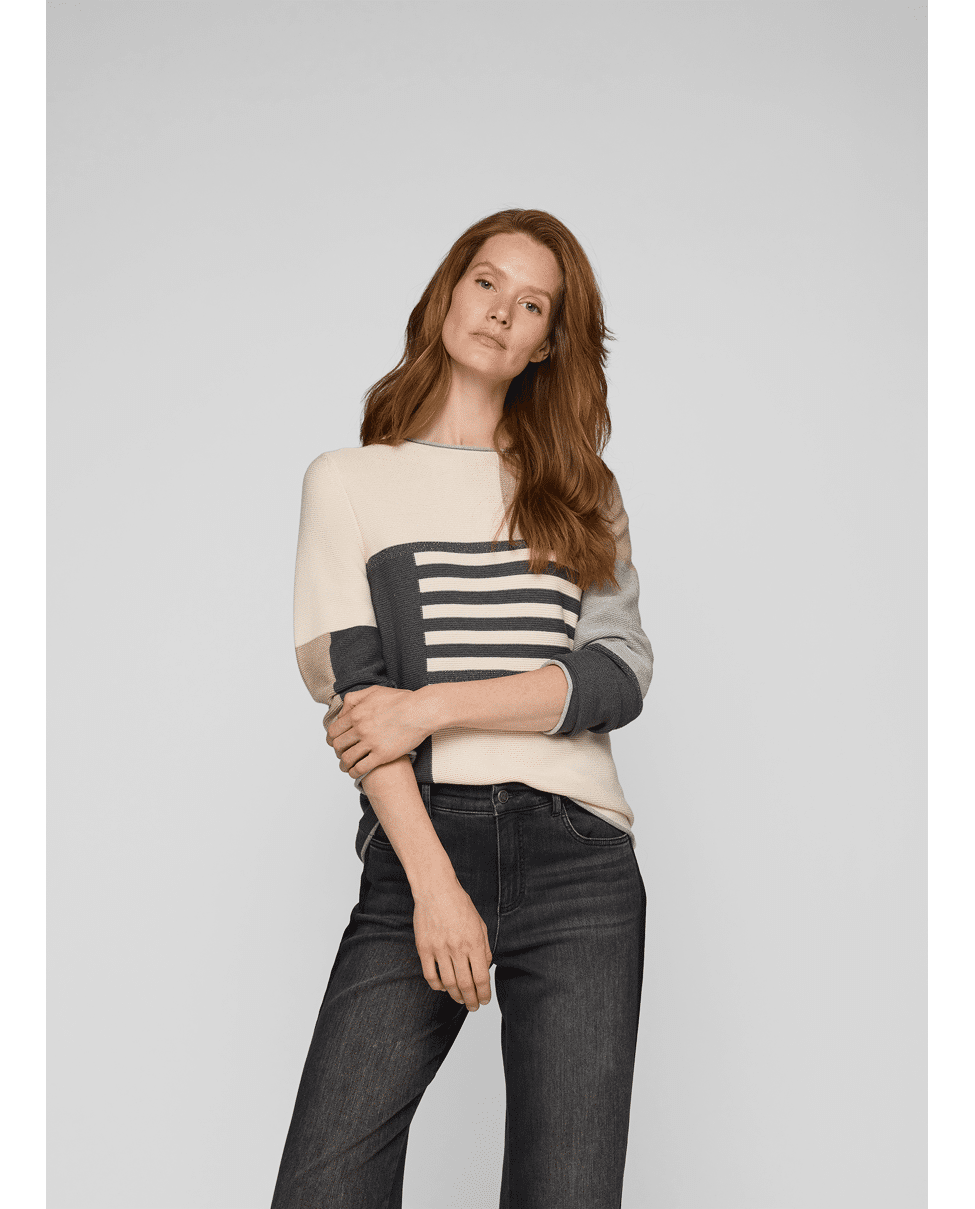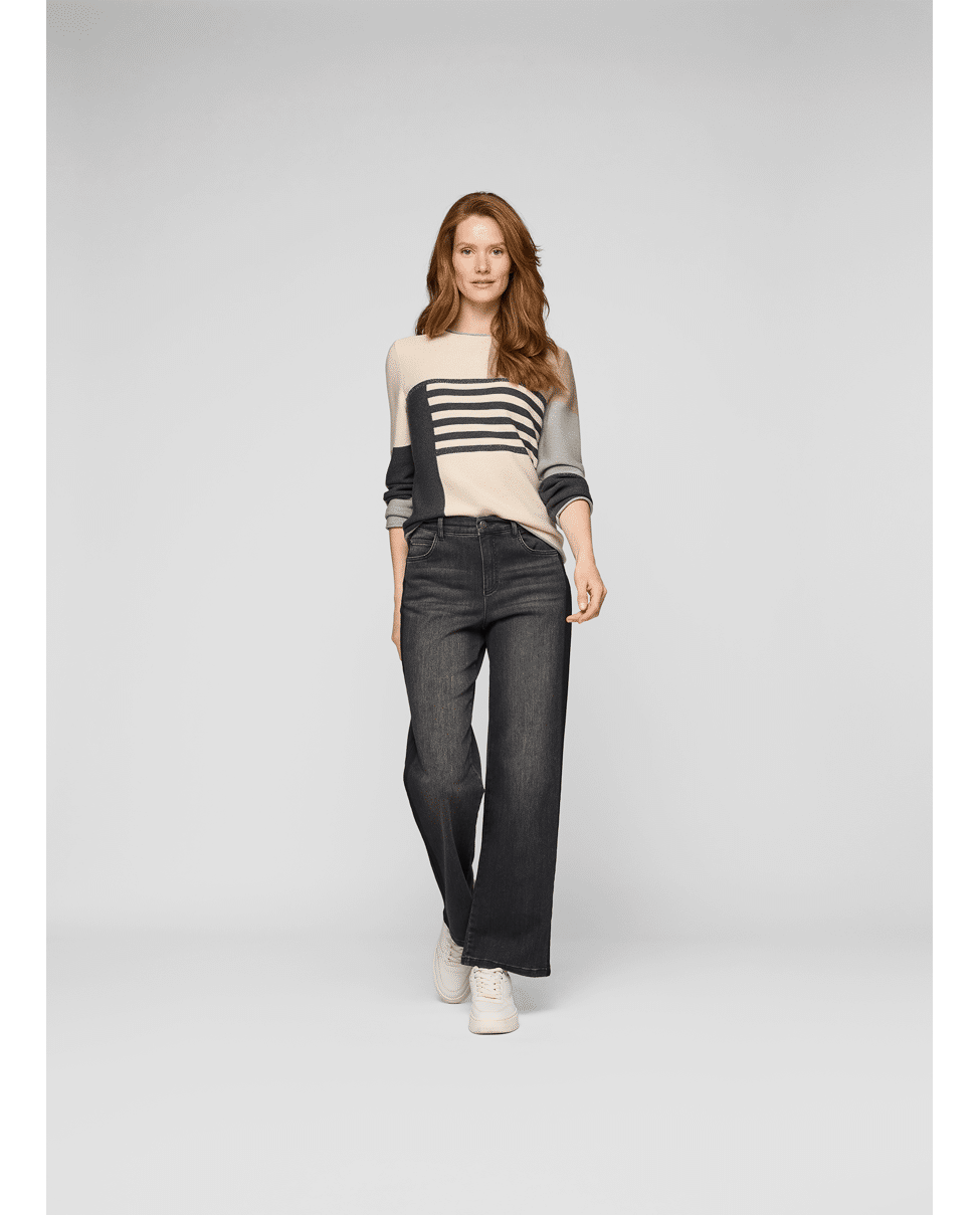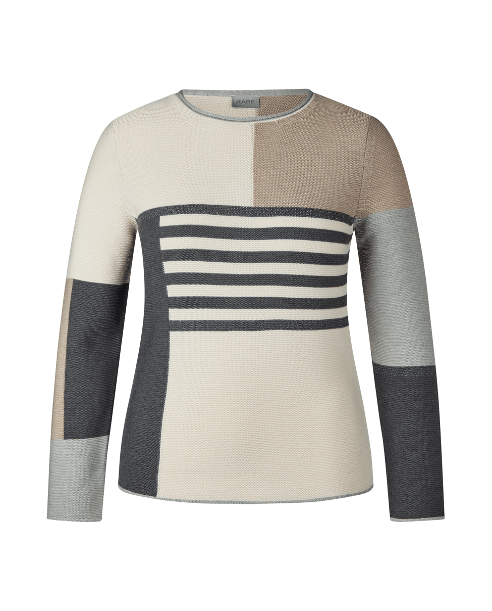 Gebreide dames trui van Rabe met grafisch streepdessin, lange mouwen en ronde hals