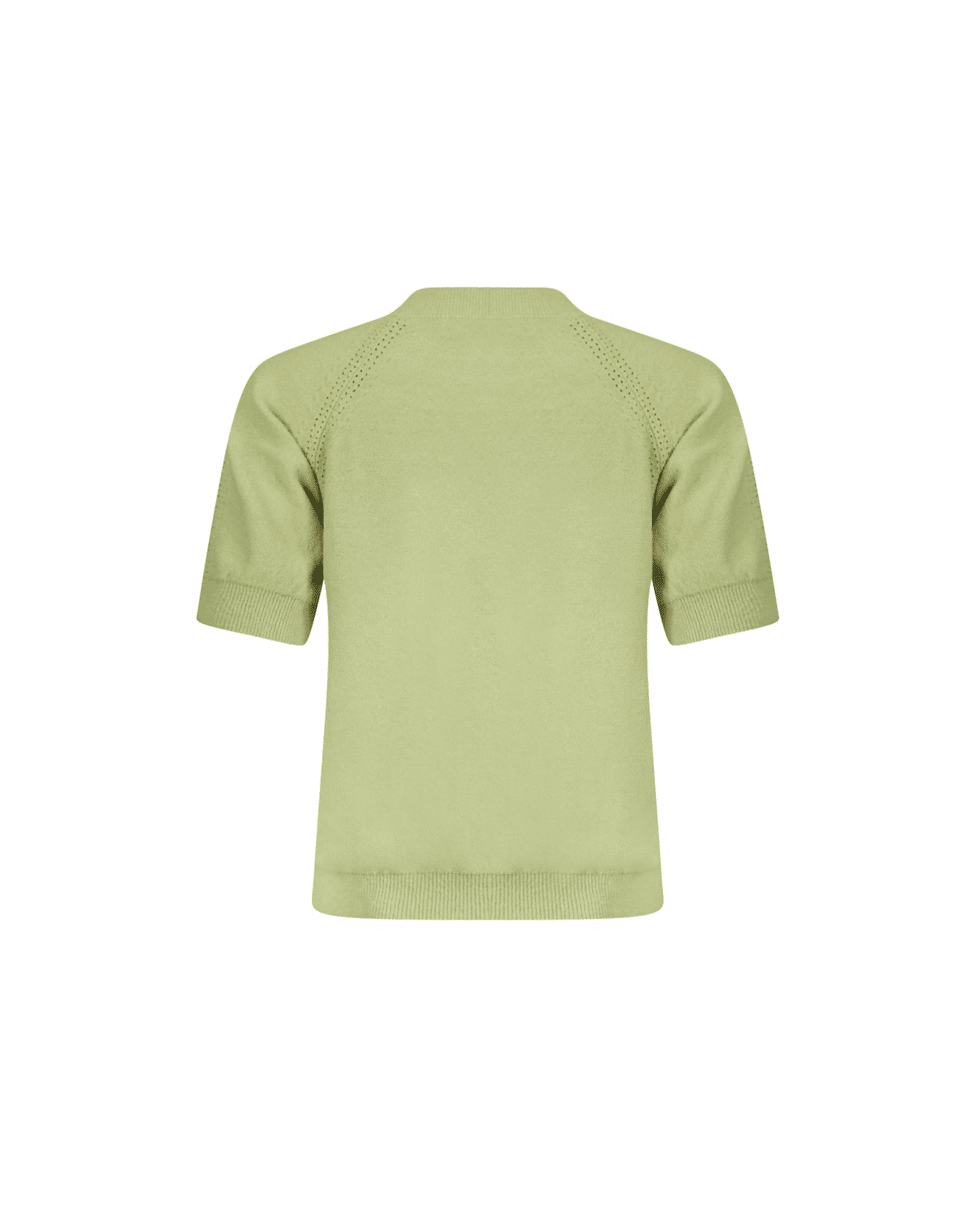 De sierlijke ajour details bij de schouders geven dit groene damestruitje nét dat beetje extra, zonder te overheersen. Vrouwelijk, verfijnd en makkelijk te dragen – zo’n item waar je steeds op terugvalt.