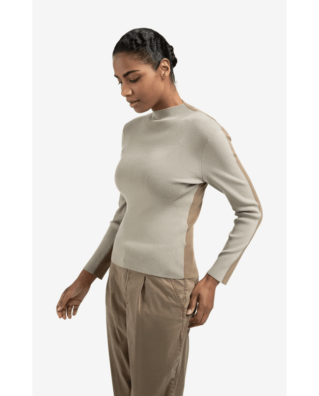 Een moderne basic met subtiel contrast. Deze sweater heeft een hoge halslijn en is uitgevoerd in een zachte viscosemix. Het duo color effect geeft een eigentijdse twist aan je outfit.