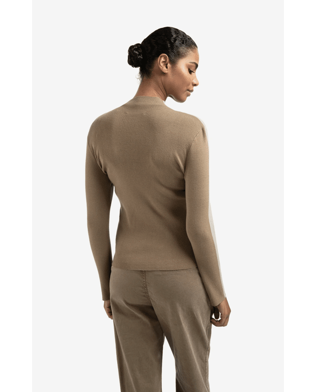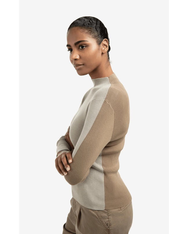 De hoge hals en cleane belijning maken dit een trui die je zowel casual als chic kunt dragen. De duo kleur maakt hem nét wat specialer.