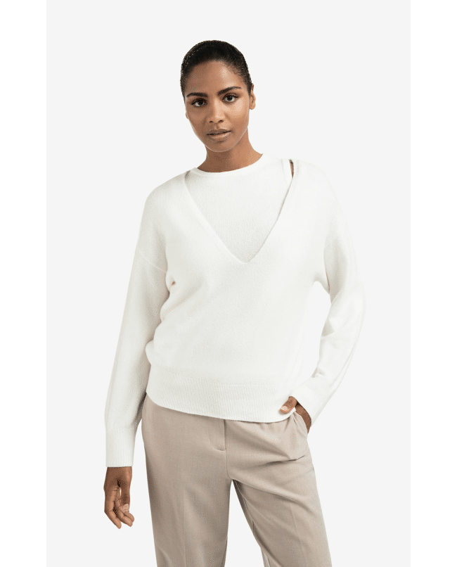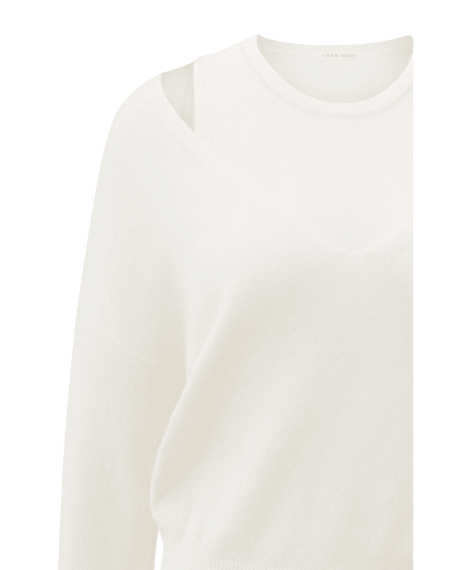Een vrouwelijke trui met een moderne twist. Deze deep V-neck sweater van Yaya wordt geleverd met een bijpassende top voor een gelaagd effect, die ook los te dragen is.