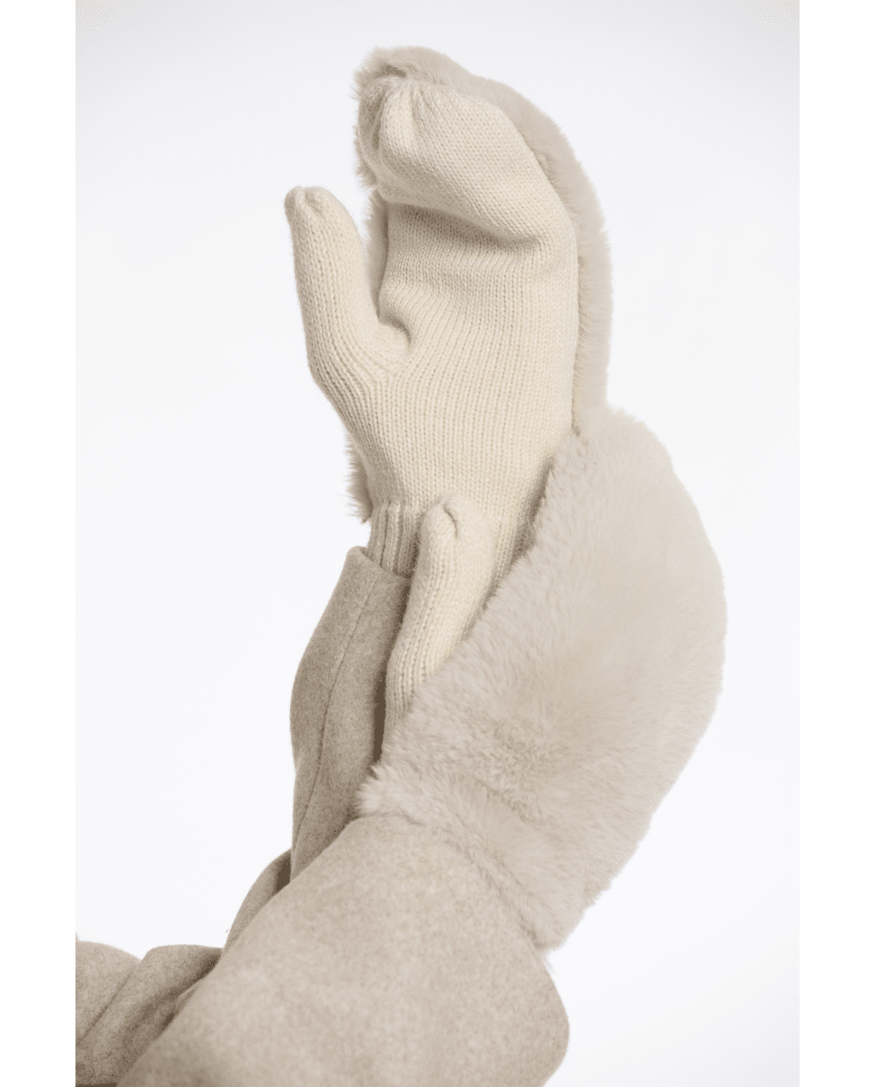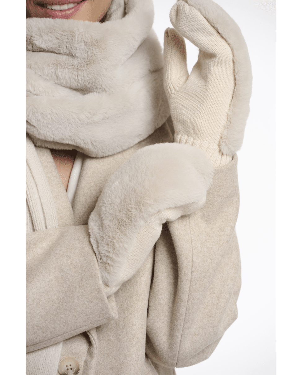 Warme handschoenen met zachte faux fur details. Deze gebreide gloves in de kleur Birch houden je handen warm én stijlvol tijdens koude dagen.