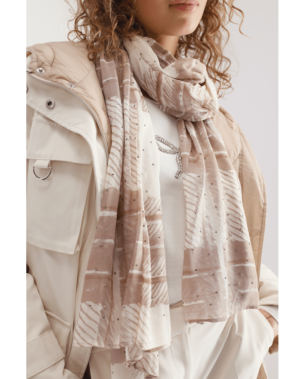 Deze luchtige sjaal in zachte tinten is de finishing touch voor je herfstlook. De ingeweven ruit en subtiele steentjes geven net wat extra flair.