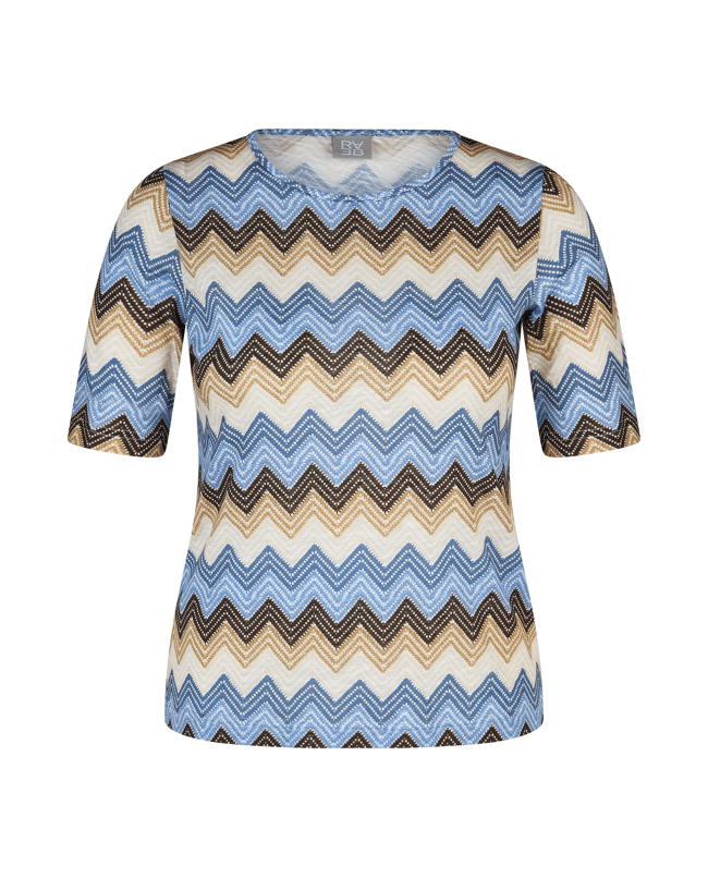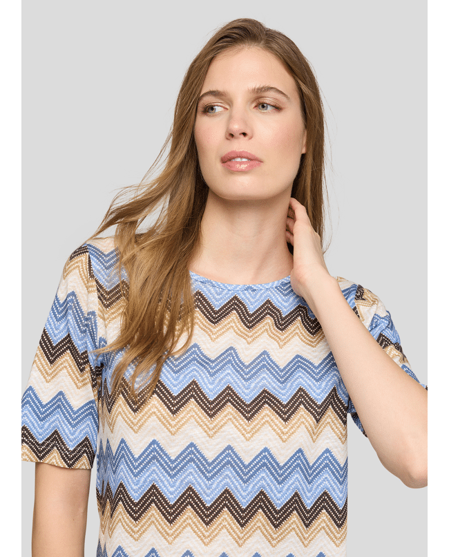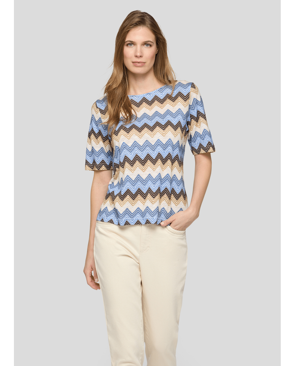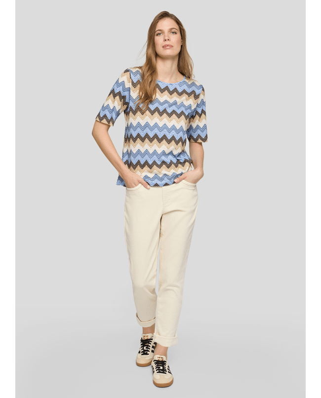Speels en stijlvol – dit T-shirt met zigzagprint is een echte blikvanger voor lente- en zomerdagen. Combineert moeiteloos met jeans of een effen broek.