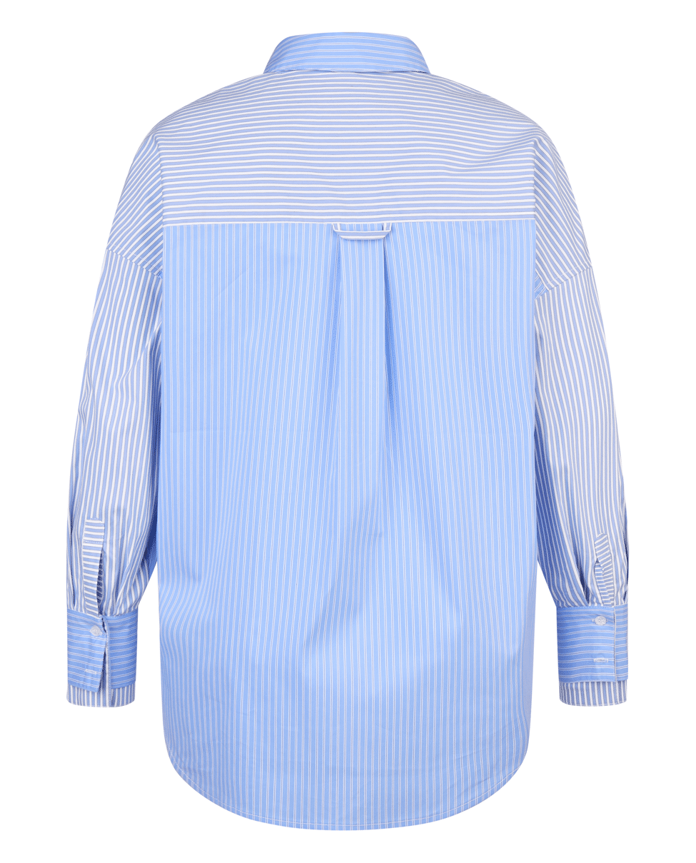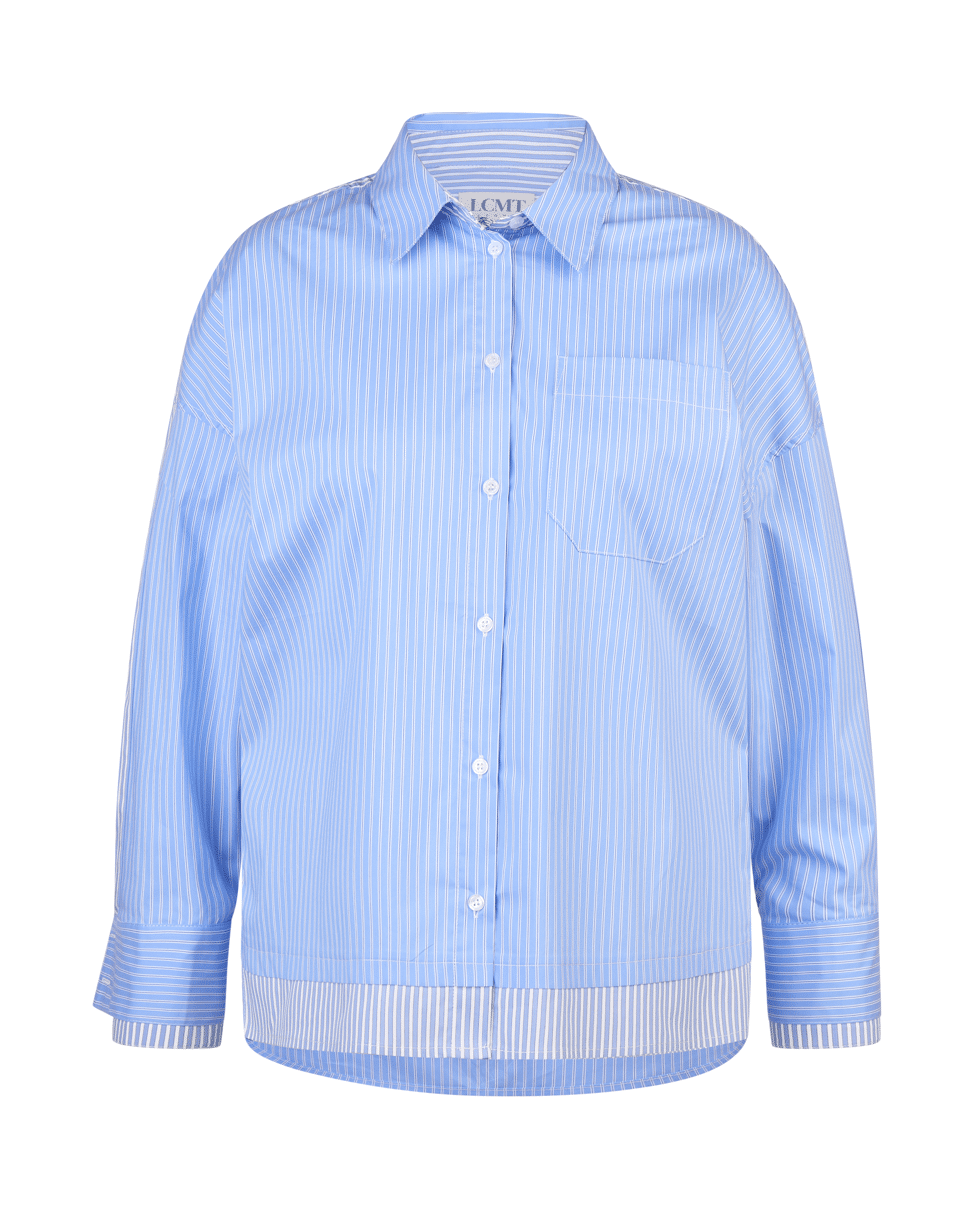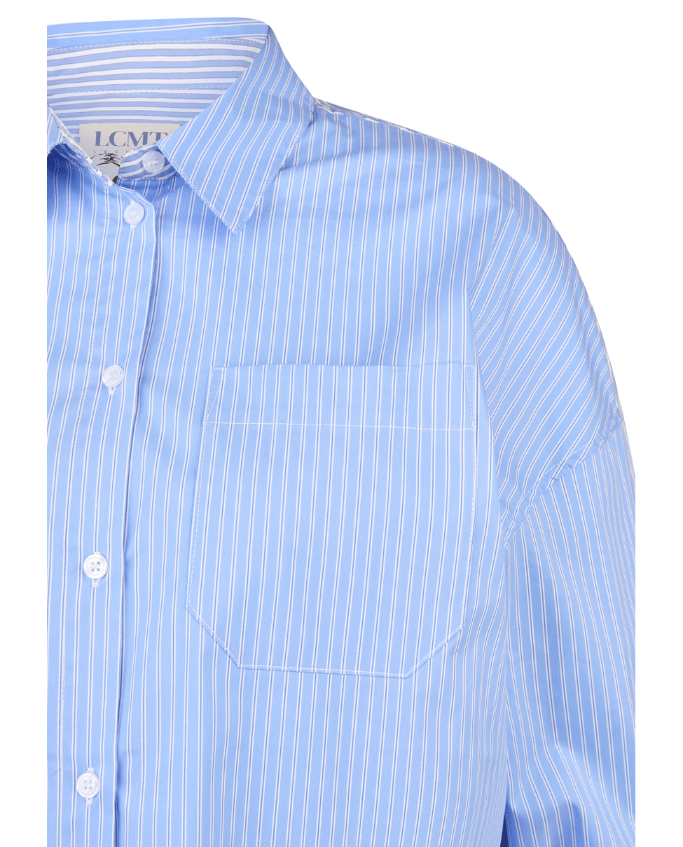 Gestreepte damesblouse van LeComte met borstzakje, lange mouwen en klassieke kraag