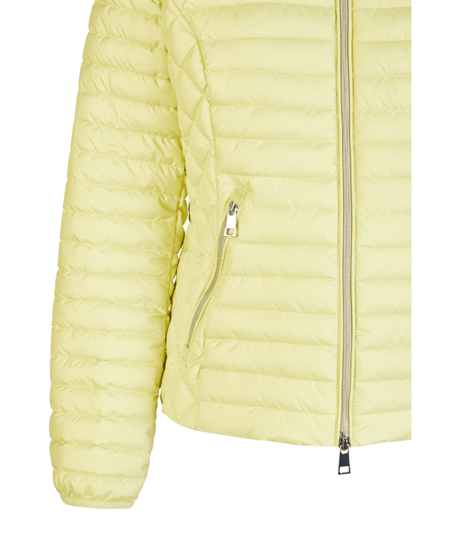 Deze lichtgewatteerde jas in frisse limekleur is een echte opfrisser voor je voorjaarsoutfit. Licht, praktisch en gemaakt om in te bewegen.