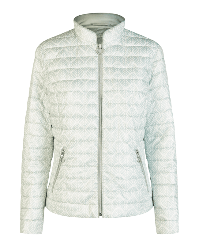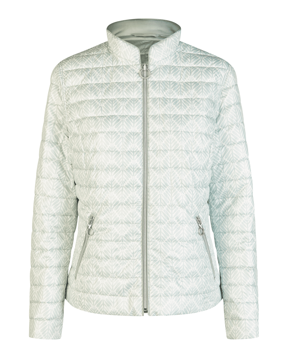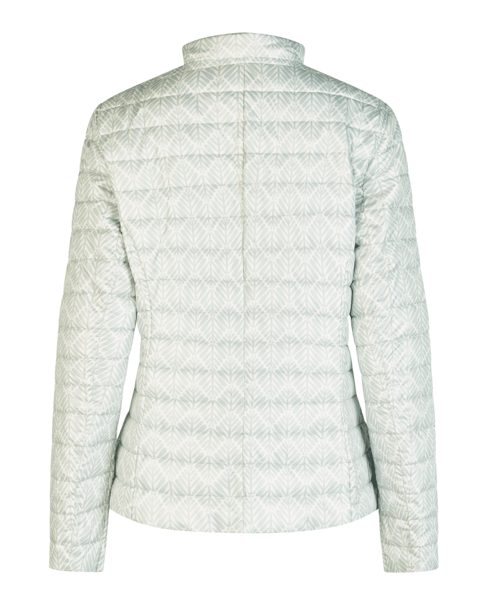 Deze jas met subtiele print in mint en offwhite is een frisse eyecatcher voor het tussenseizoen. Licht, comfortabel en nét even anders.