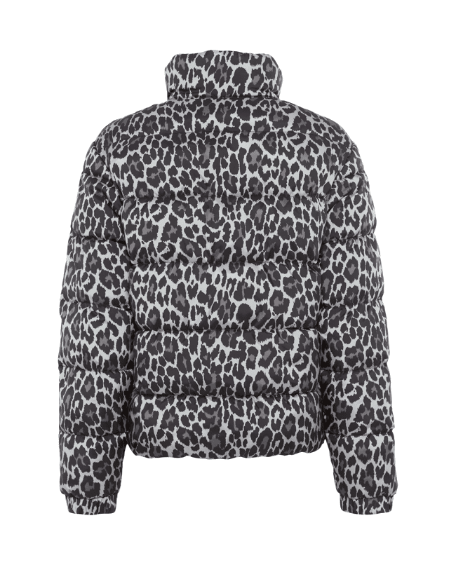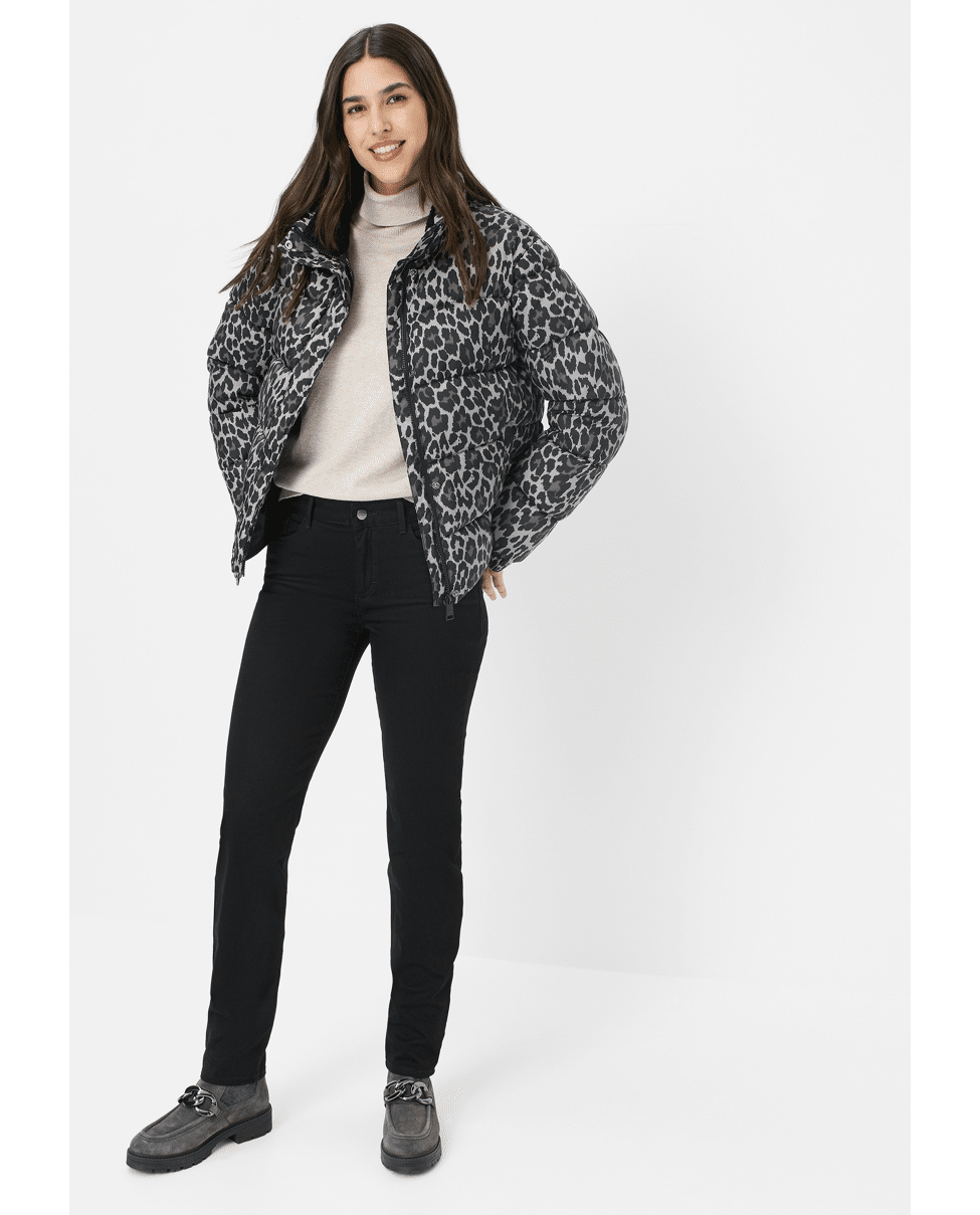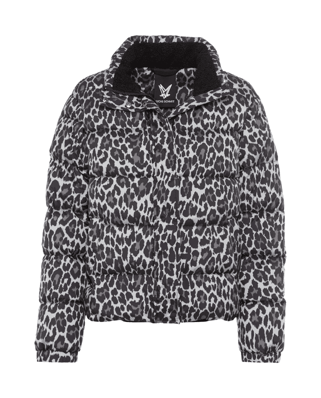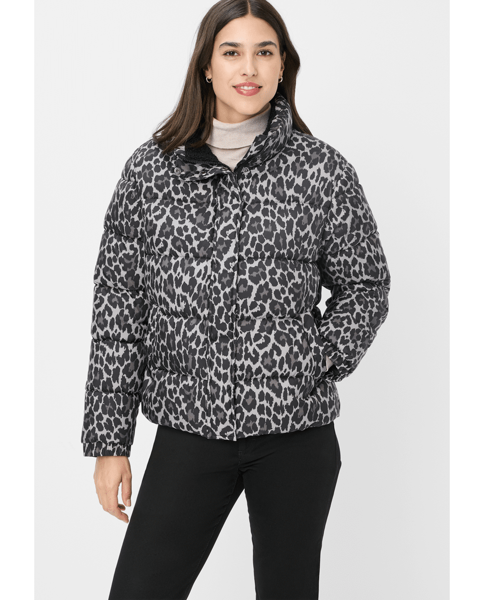 Gewatteerd dames jack van Fuchs Schmitt met luipaard print, opstaande halslijn, steekzakken en verborgen ritssluiting