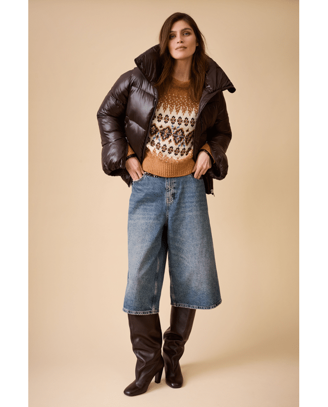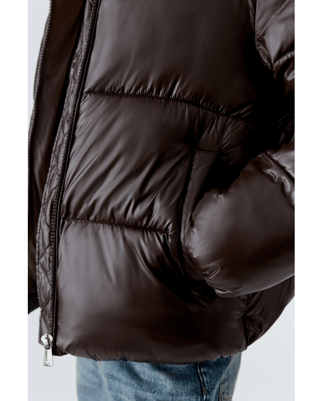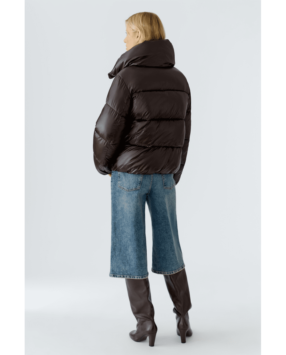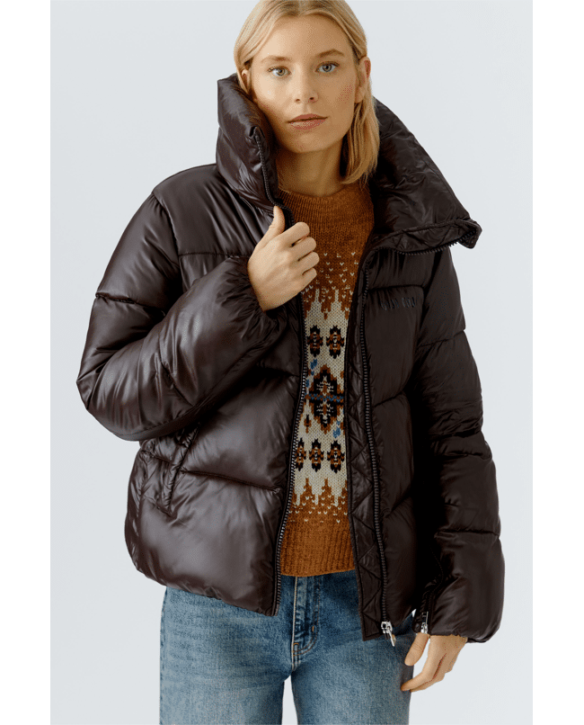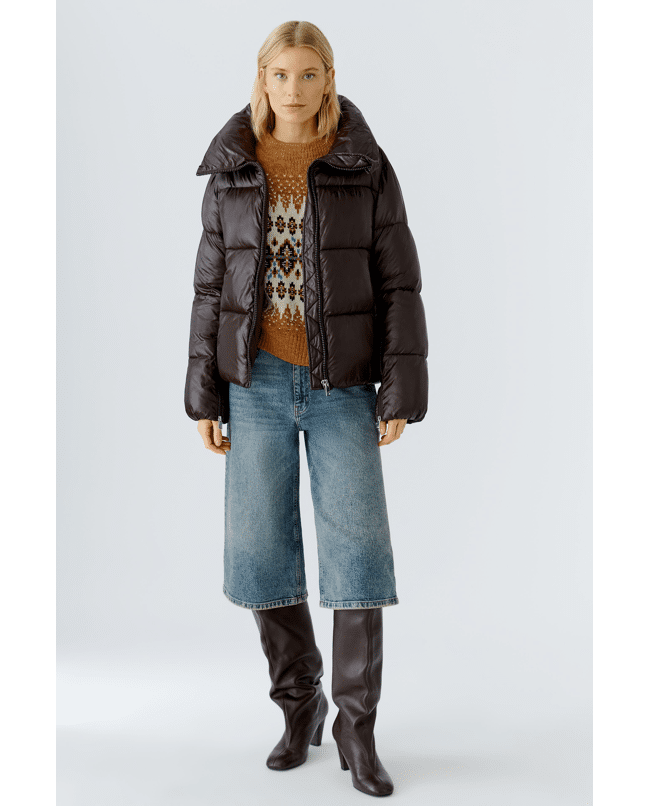 Dit gewatteerde damesjack van Oui in ganache bruin is een moderne jas die warmte en stijl combineert. Praktisch en comfortabel voor koude herfstdagen en de winter.