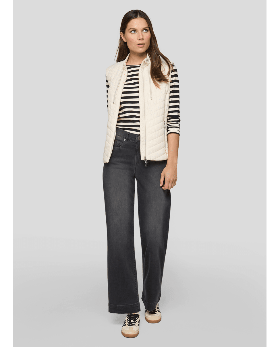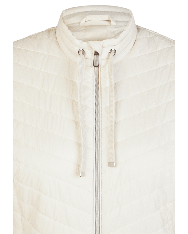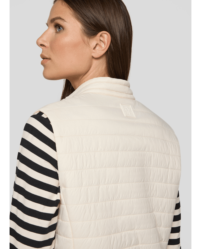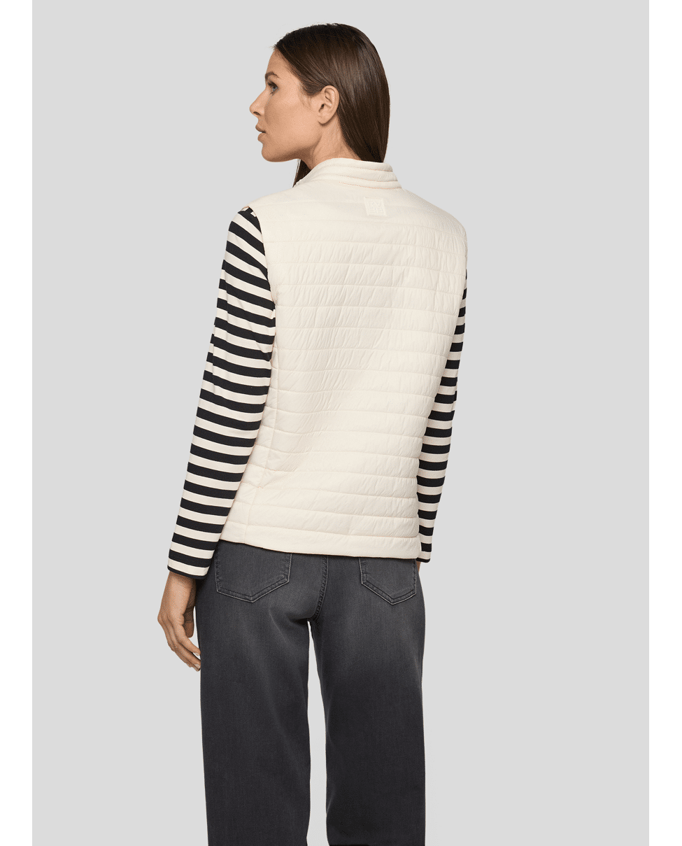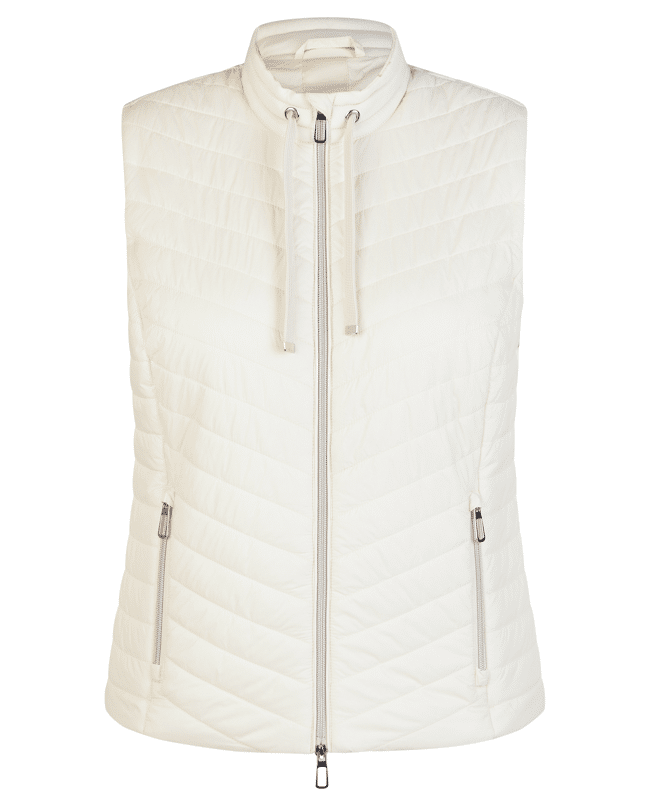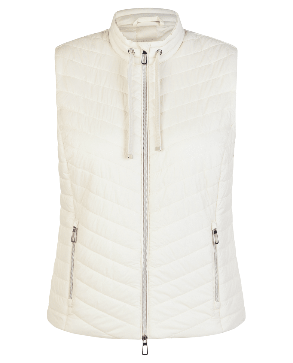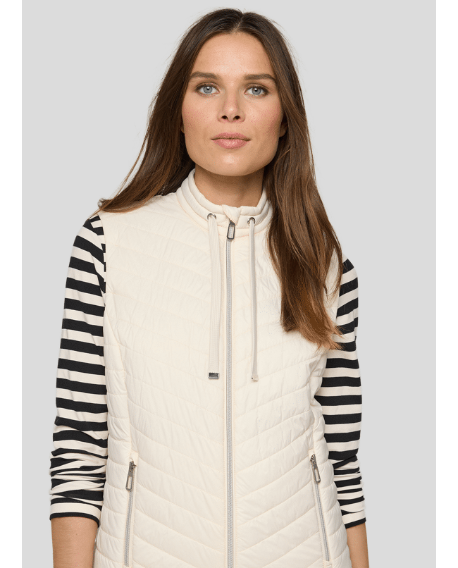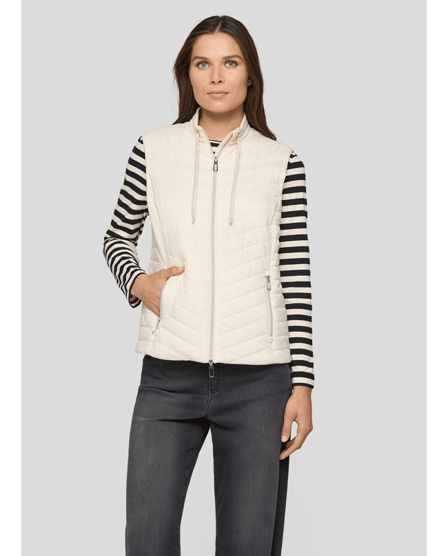 Dames gewatteerde bodywarmer van Rabe met diagonale stiknaden, tweeweg-rits, rits zakken en klein opstaand kraagje met trekkoord
