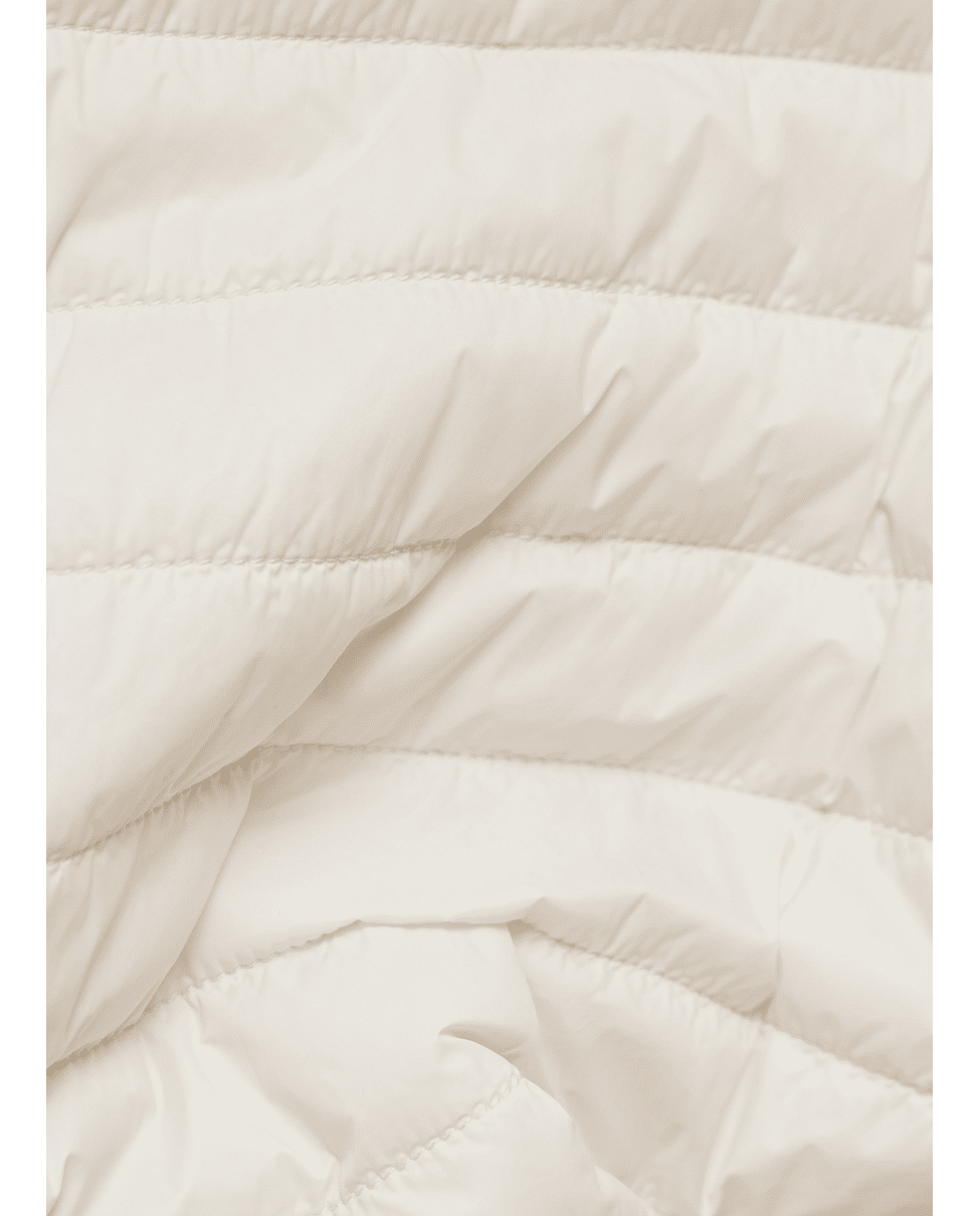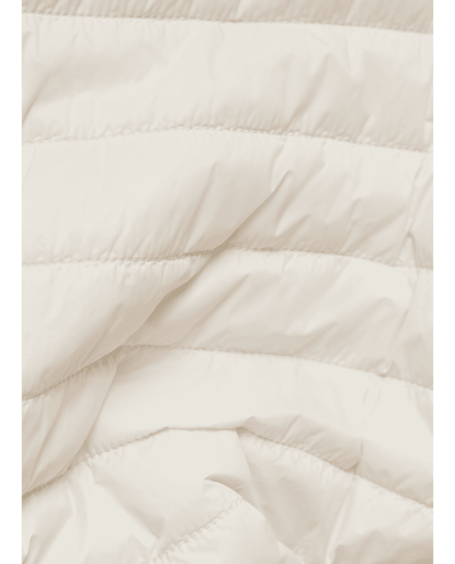 De diagonale stiknaden en opstaande kraag zorgen voor een moderne look, terwijl de zachte vulling licht en comfortabel aanvoelt.