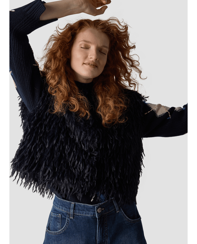 Dit mouwloze vest van LCMT is een echte eyecatcher voor de koudere dagen. De grove, harige textuur geeft je outfit direct een modieuze en luxueuze uitstraling. Perfect voor wie houdt van comfortabel, maar stijlvol.