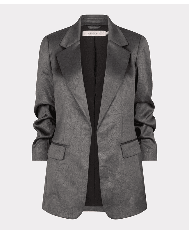 Glanzende dames blazer van Esqualo met krinkel stof, opgeplooide mouwen, zonder sluiting en 2 klepzakken