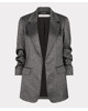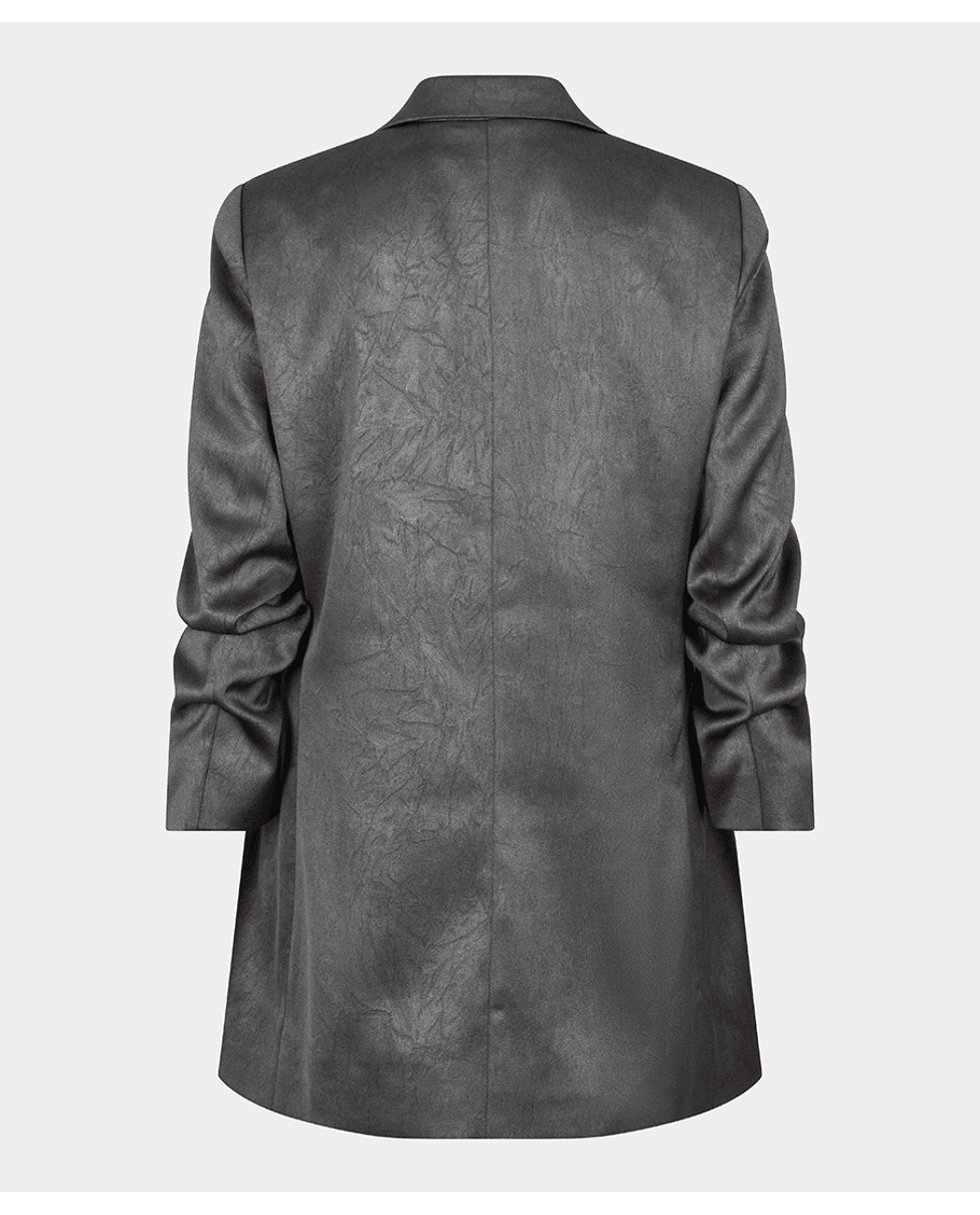 Deze antracietkleurige blazer met shimmer en crinkle structuur geeft je look direct een eigentijdse upgrade. Combineer 'm met de bijpassende broek of draag ‘m los voor een chique twist.