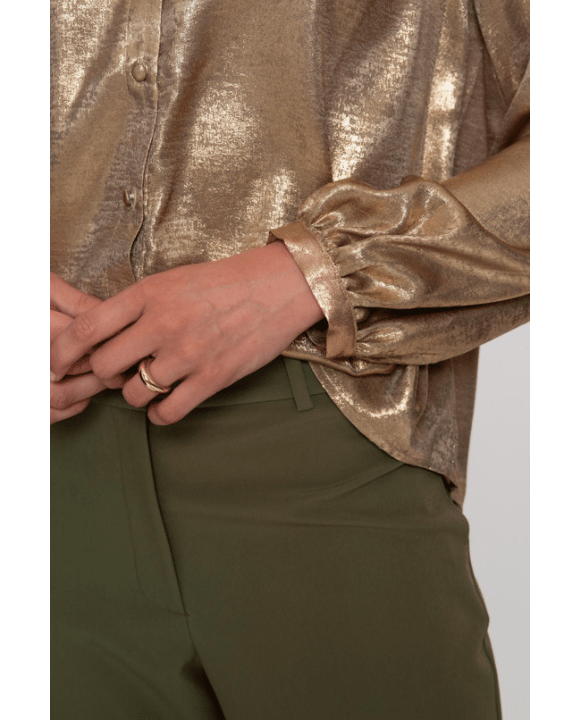 De glanzende stof vangt het licht op een subtiele manier – ideaal voor wie houdt van een vleugje glamour zonder te overdrijven.