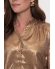Dames glanzende blouse van Geisha met velvetlook, ronde hals, knoopsluiting en lange ballonmouwen