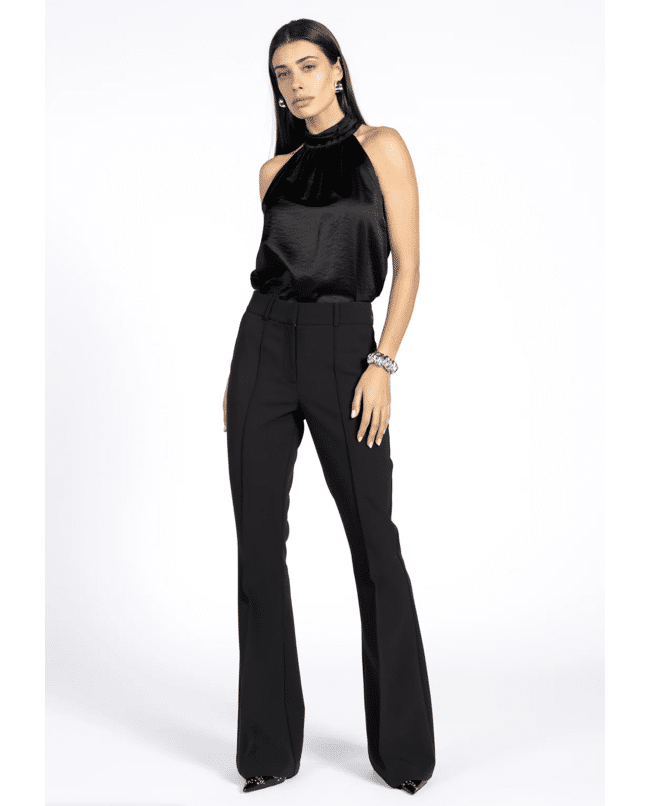 De Glenn Broek heeft een hoge taille. De flared pijpen zorgen voor een gestroomlijnd silhouet, terwijl de verticale deelnaden je benen optisch verlengen. Perfect voor zowel kantoordagen als een dinner.