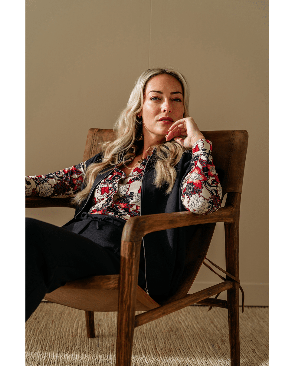 De combinatie van de opstaande kraag, rits en elastische zoom maakt dit gilet perfect voor een nonchalante, maar verzorgde uitstraling. Mooi in set met de Grace pants.