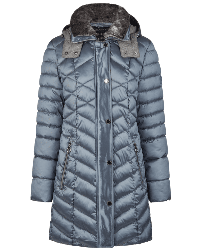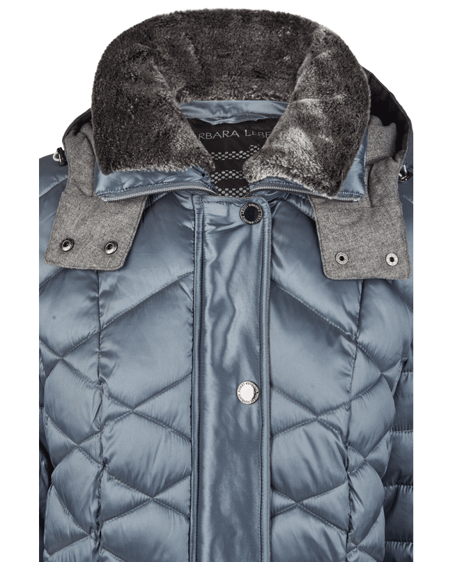 Halflang damesjack van Barbara Lebek met kraag en capuchon, verborgen ritssluiting en ritszakken