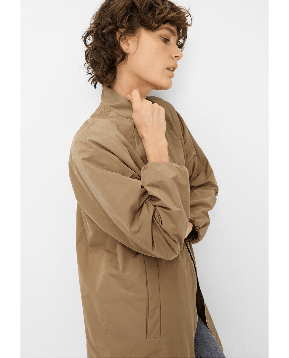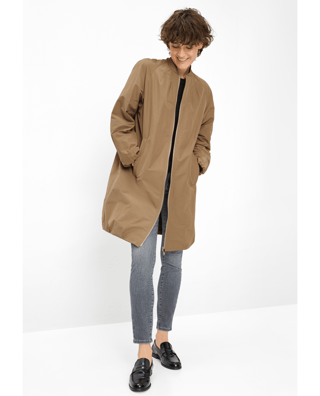 De bomberdetails en caramelkleur geven deze jas een frisse, eigentijdse uitstraling – comfortabel én stijlvol in één.
