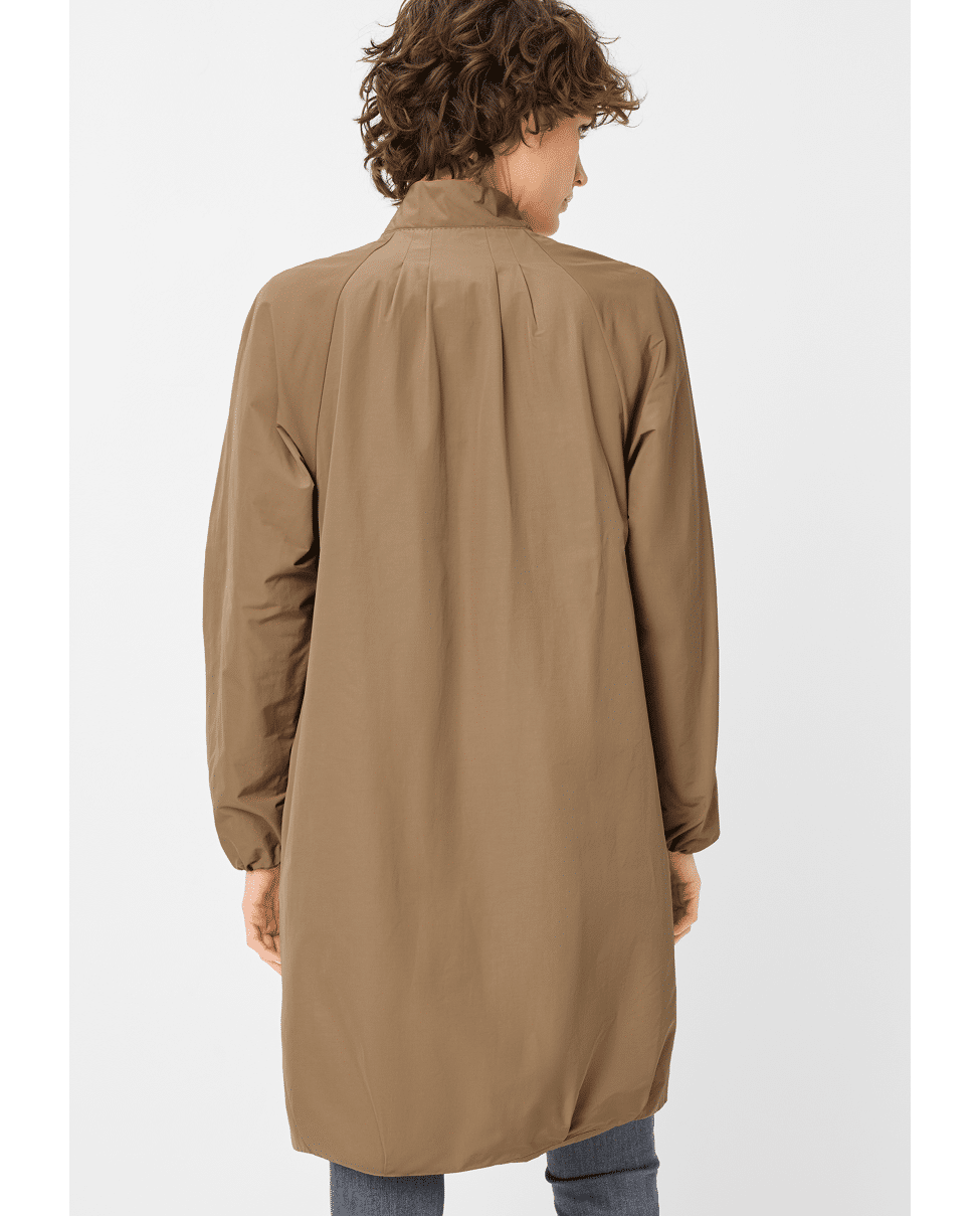 Losvallend silhouet met raglanmouwen. Valt op maat met ruimte voor laagjes.