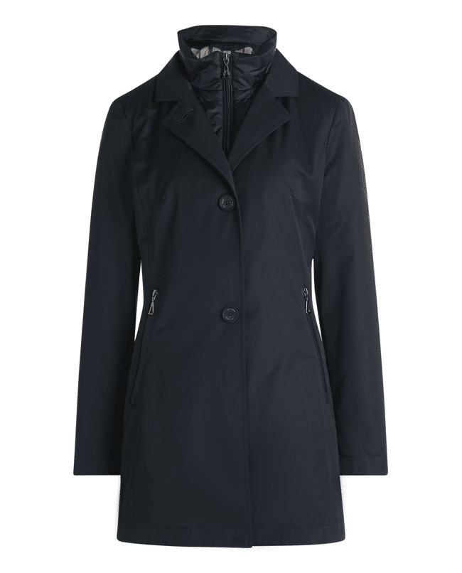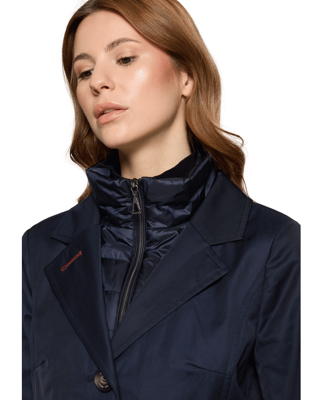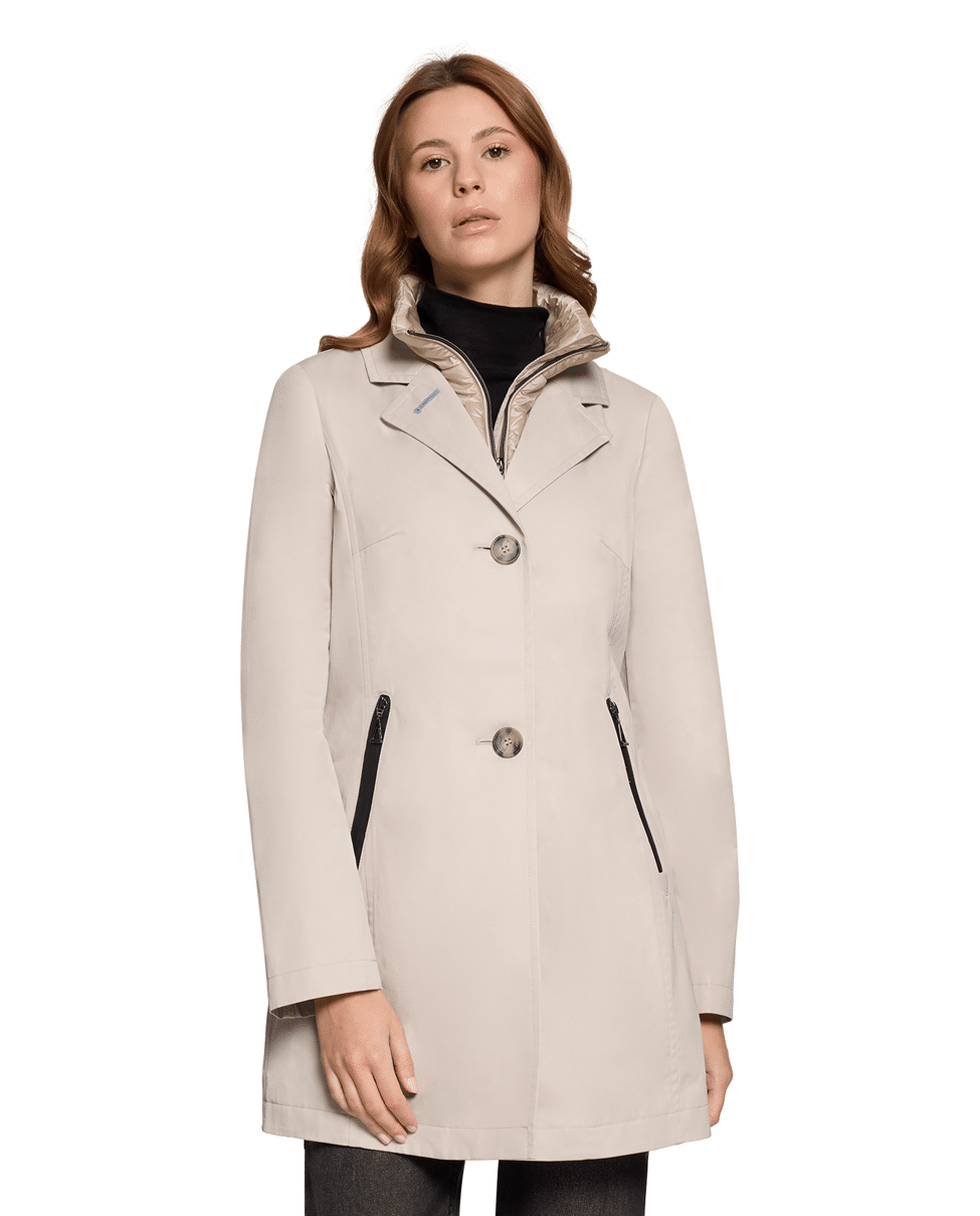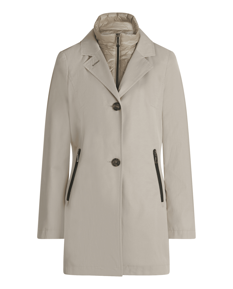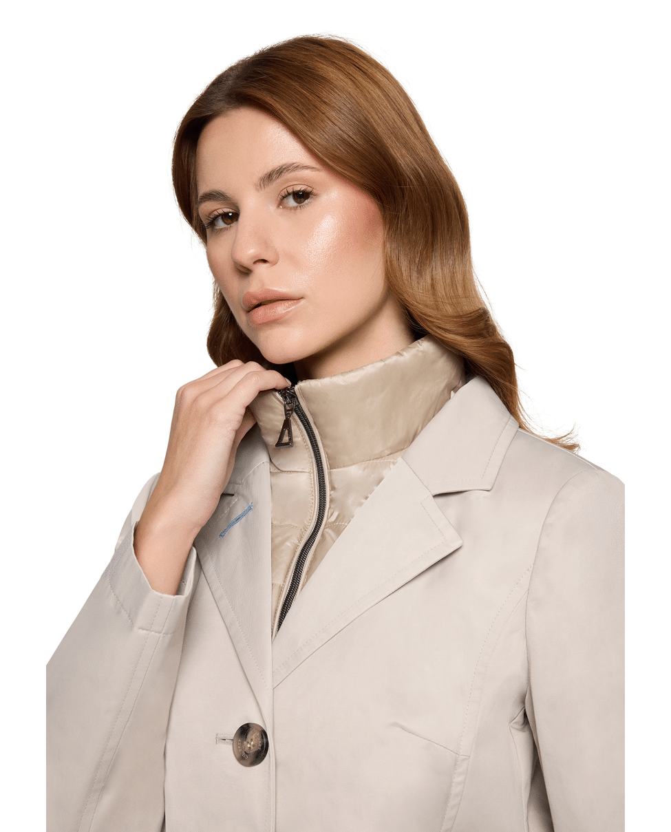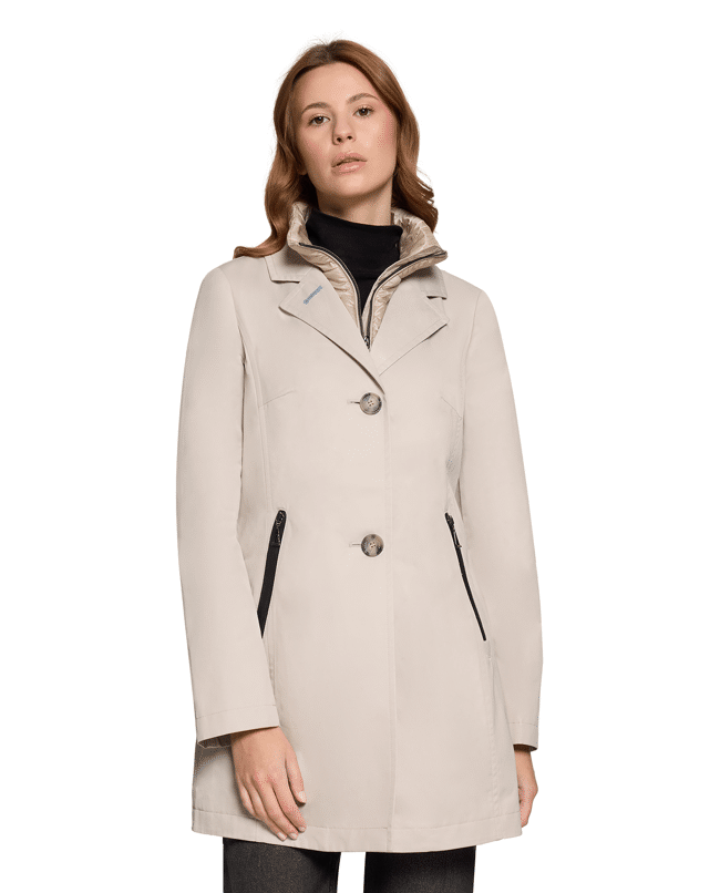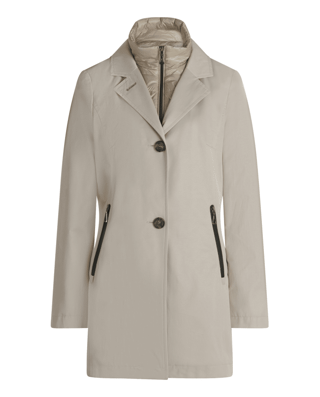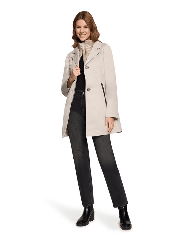 Halflange damesjas van Gil Bret met uitneembare mouwloze bodywarmer, getailleerde pasvorm, ritszakken en knoopsluiting