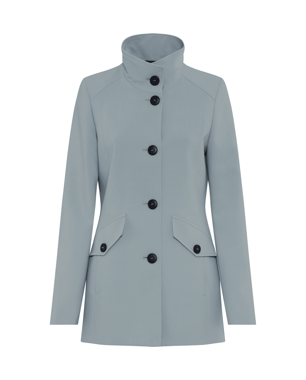 • Opstaande kraag en knoopsluiting