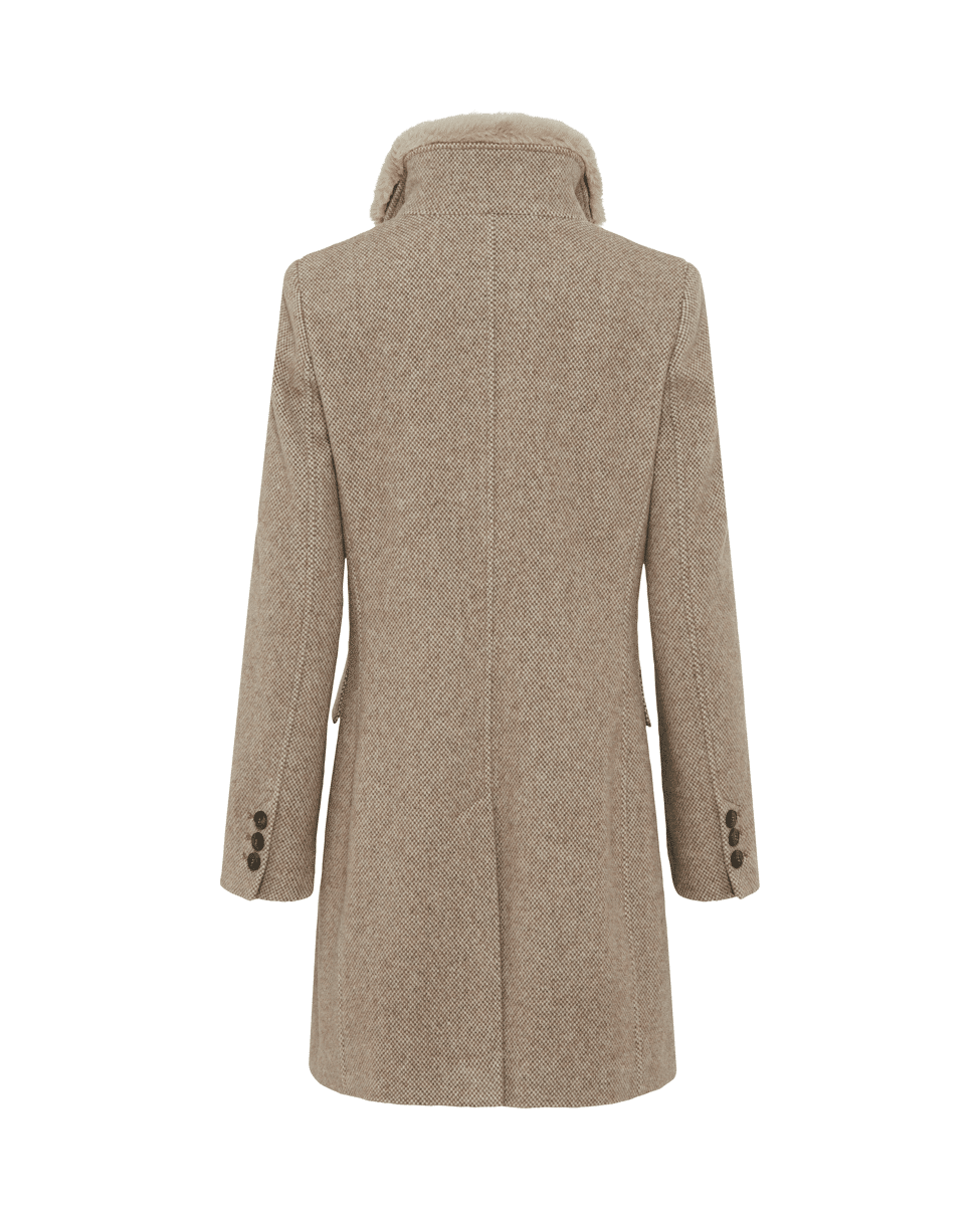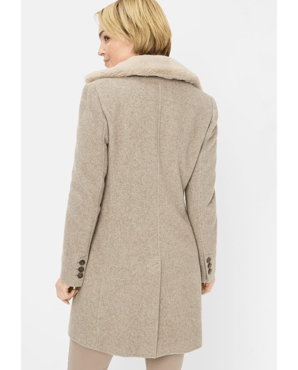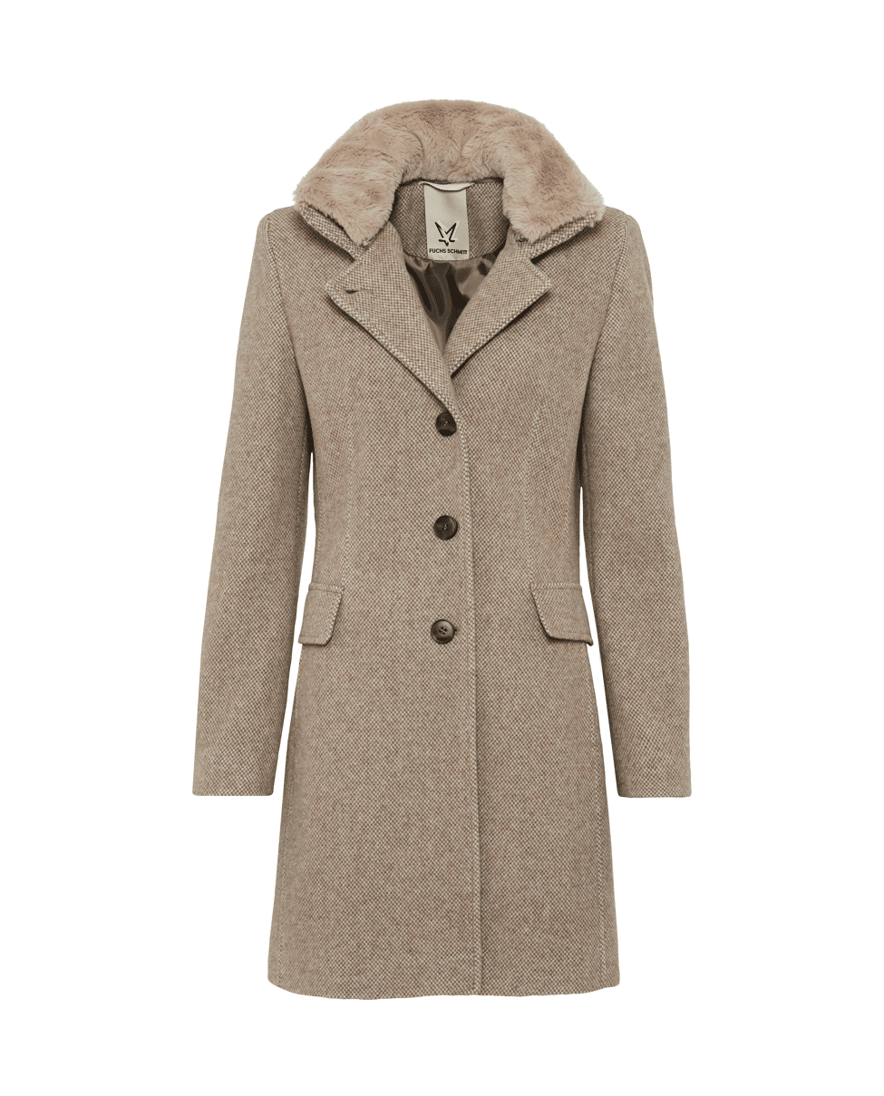 Halflange wollen damesjas van Fuchs Schmitt met knoopsluiting, reverskraag en imitatiebontkraag