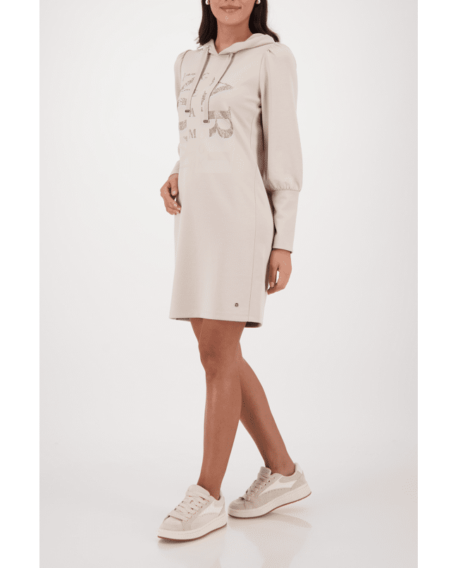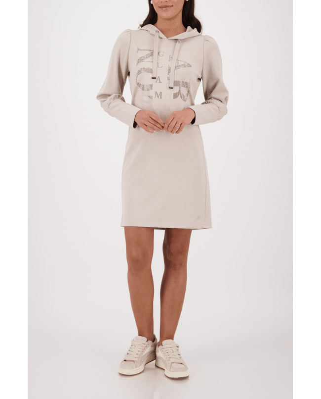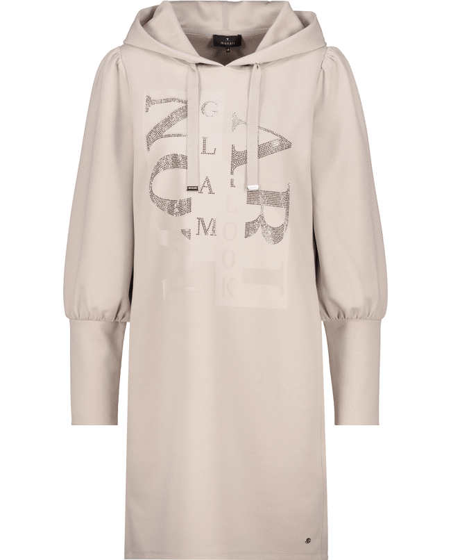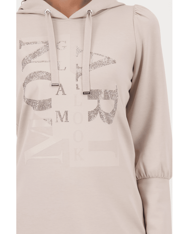 Hoodie-jurk van Monari met strassteentjes, mini lengte, capuchon en lange mouwen