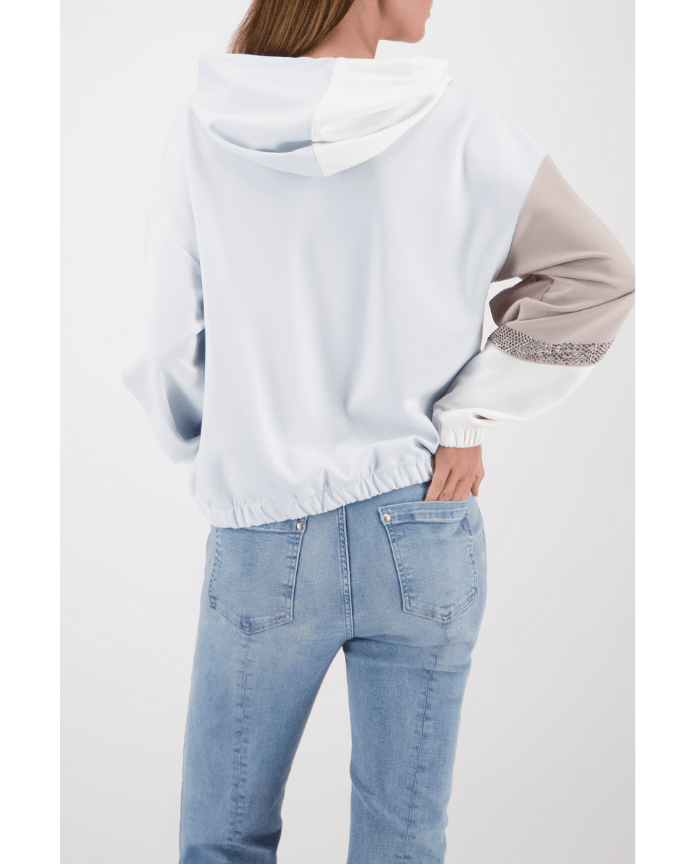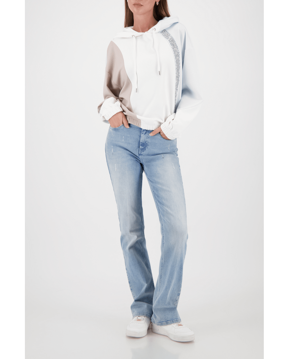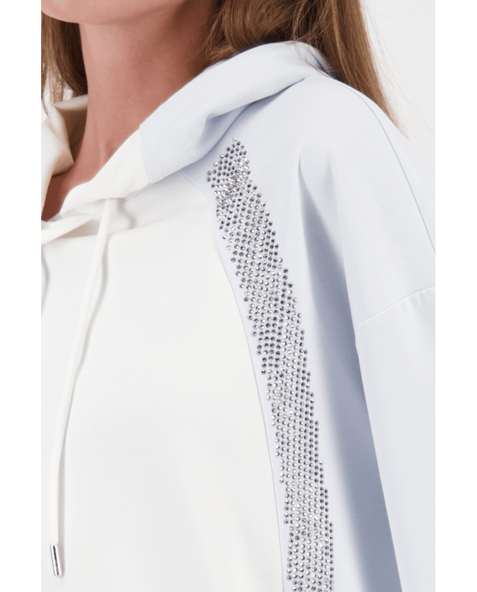 De kleurblokken en strassbanden geven deze hoodie een speelse én vrouwelijke uitstraling.