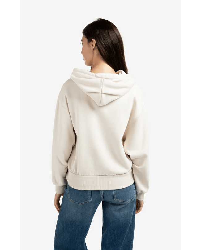 Een casual hoodie met een vrouwelijke twist. Dit model is uitgevoerd in een zachte katoenmix en heeft een geplooide onderkant die zorgt voor een speels effect. Perfect voor een relaxte, maar stijlvolle look.
