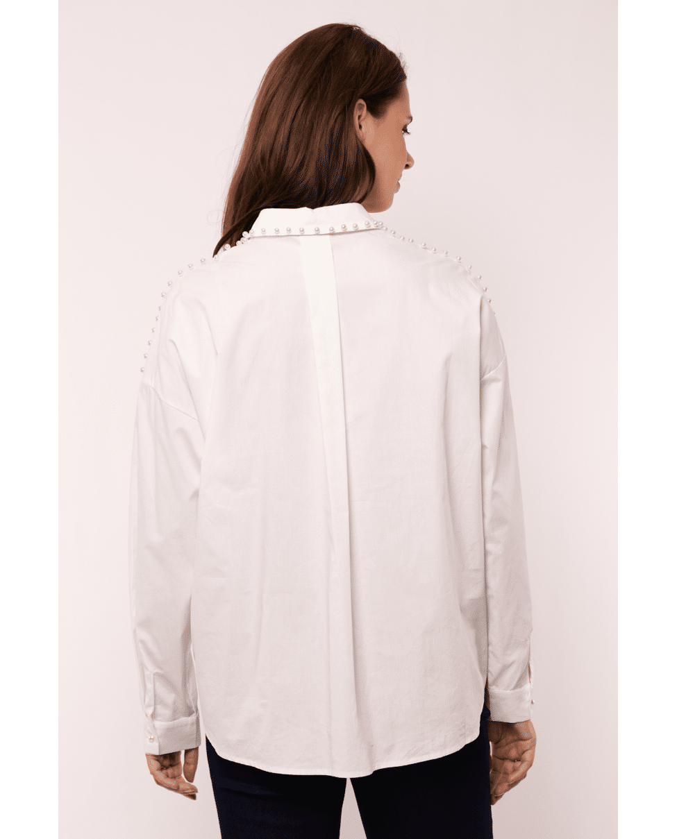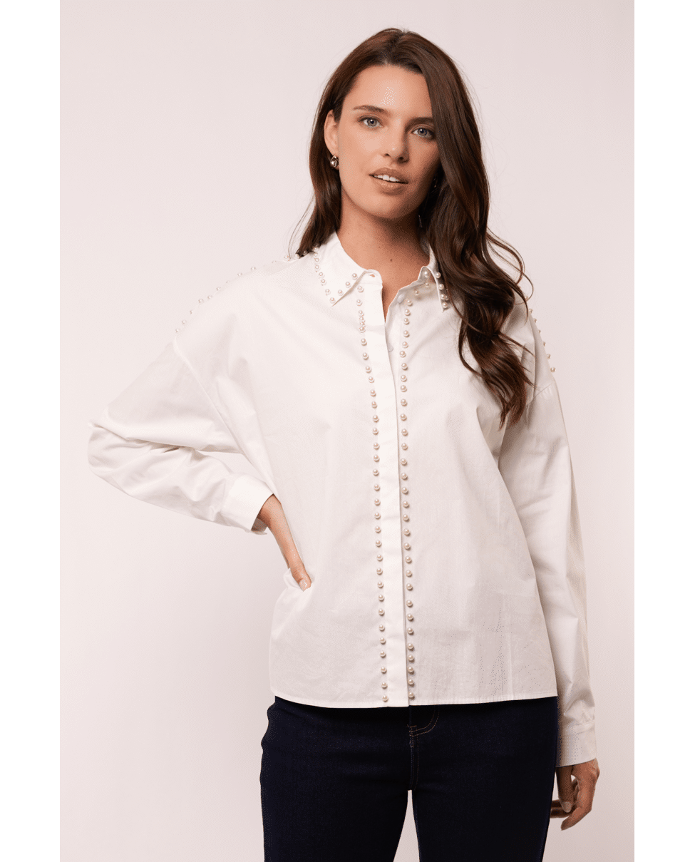 Idris - damesblouse van G-maxx met verfijnde pareldetails, overhemdkraag en lange mouwen