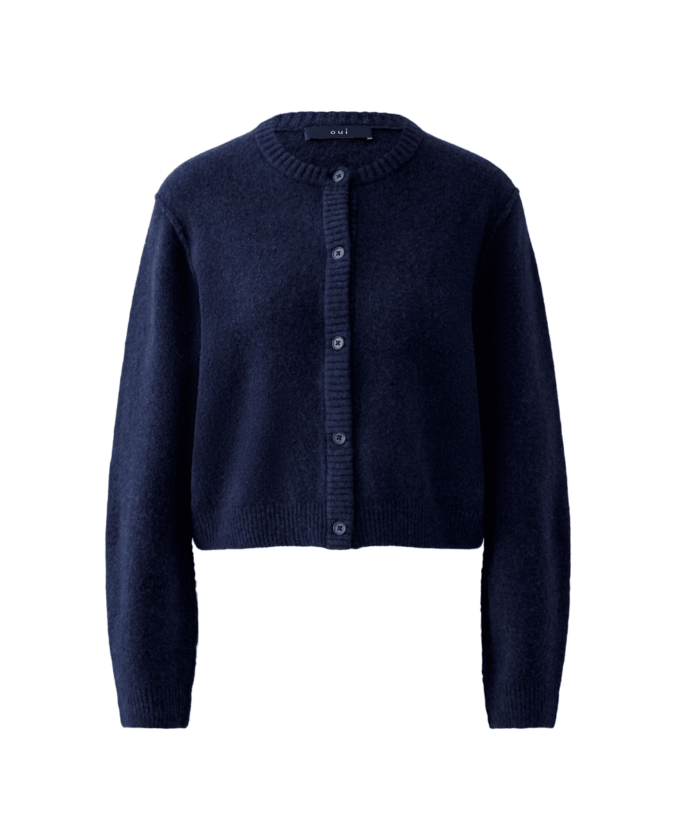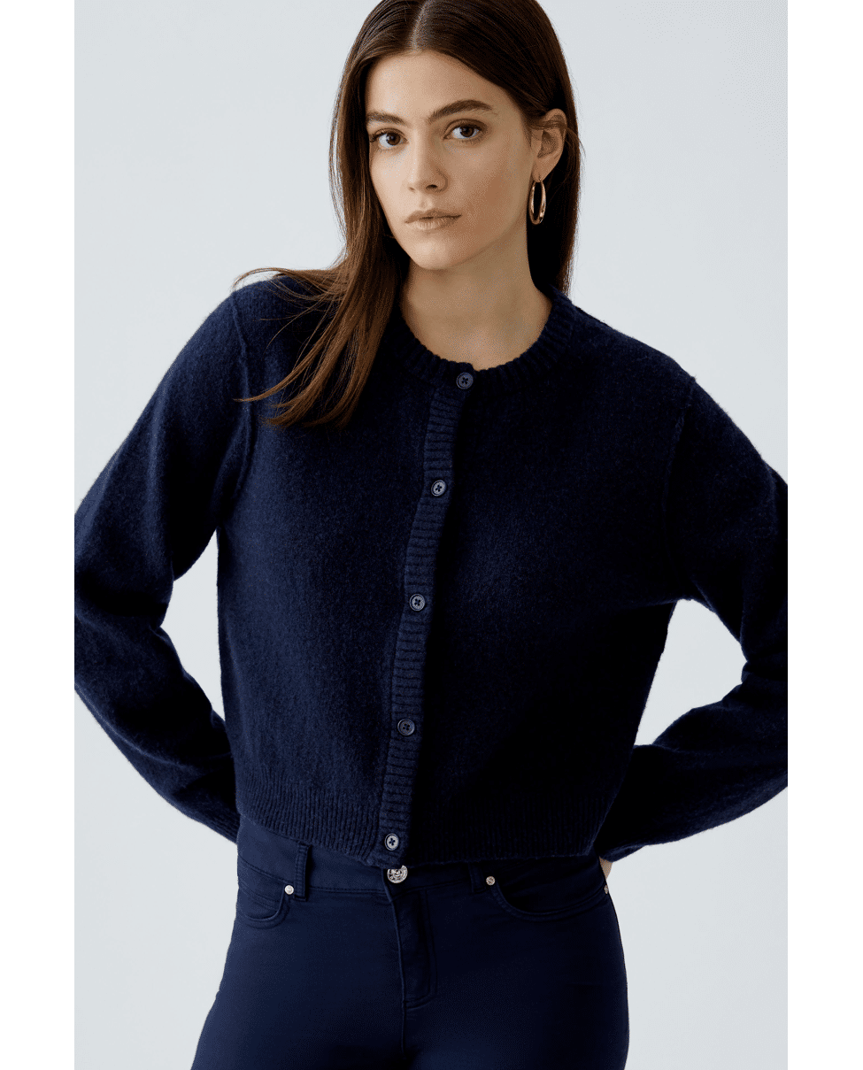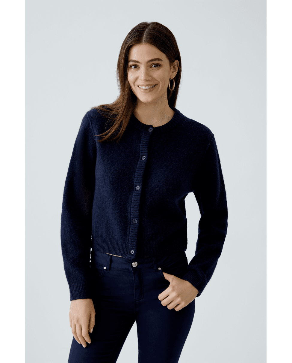 ILAYA - Kort gebreid damesvest van Oui met ronde hals, knoopsluiting en lange mouwen