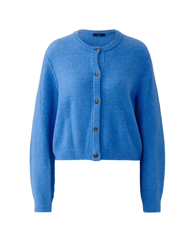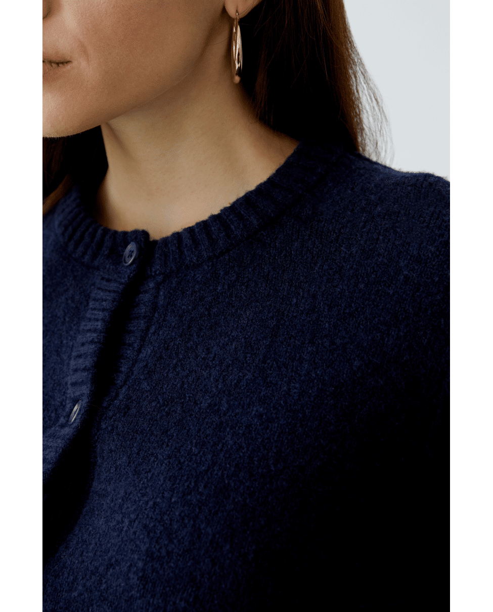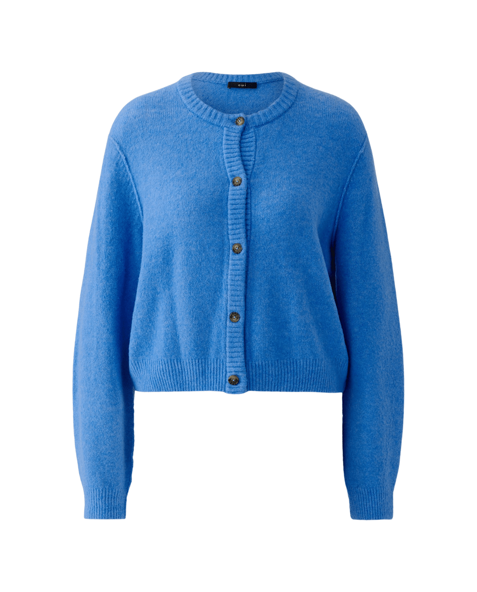 ILAYA - Kort gebreid damesvest van Oui met ronde hals, knoopsluiting en lange mouwen
