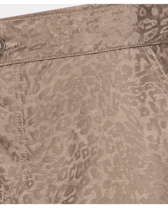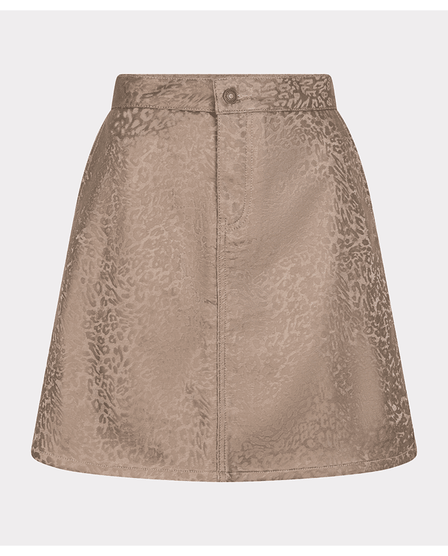 De combinatie van metallic glans en subtiele dierenprint geeft deze rok een krachtige, vrouwelijke uitstraling.