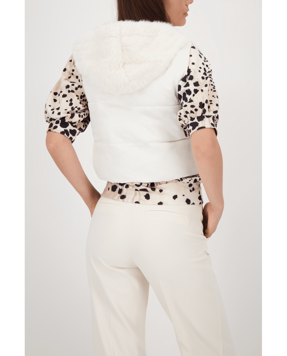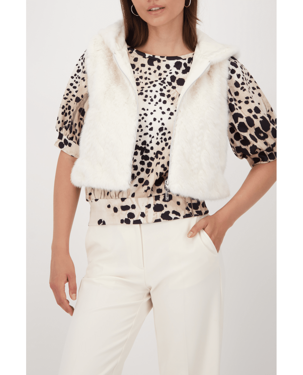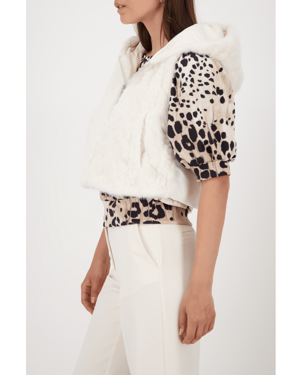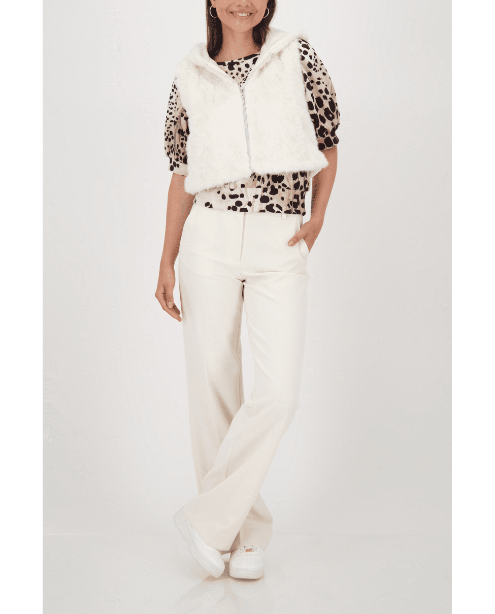 Deze zachte bodywarmer van imitatiebont voegt instant warmte én stijl toe aan je outfit. Perfect voor laagjes tijdens frisse herfst- en winterdagen.
