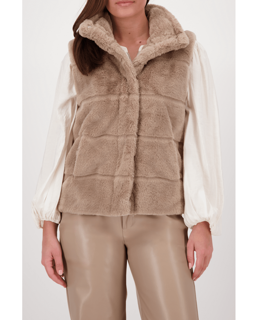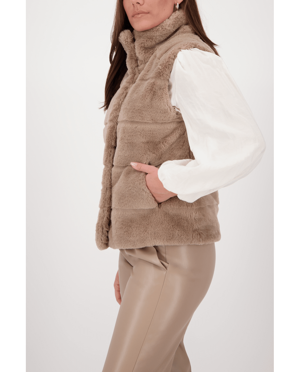 Bodywarmer van imitatiebont met opstaande kraag