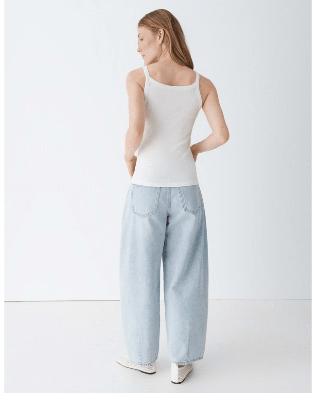 Een fijne geribde dames top die je look moeiteloos strak en modern houdt. De IZLI tanktop met hoge hals en smalle bandjes is een veelzijdige basic voor elk seizoen. Draag ’m solo op een jeans of als comfortabele laag onder een blazer of vest.