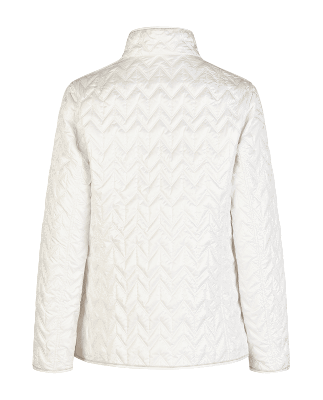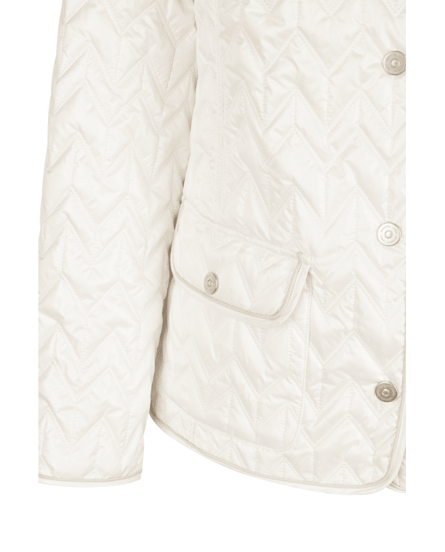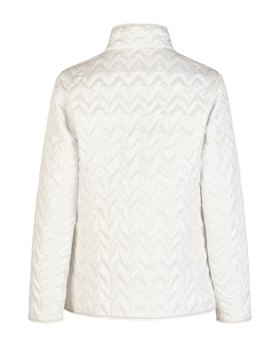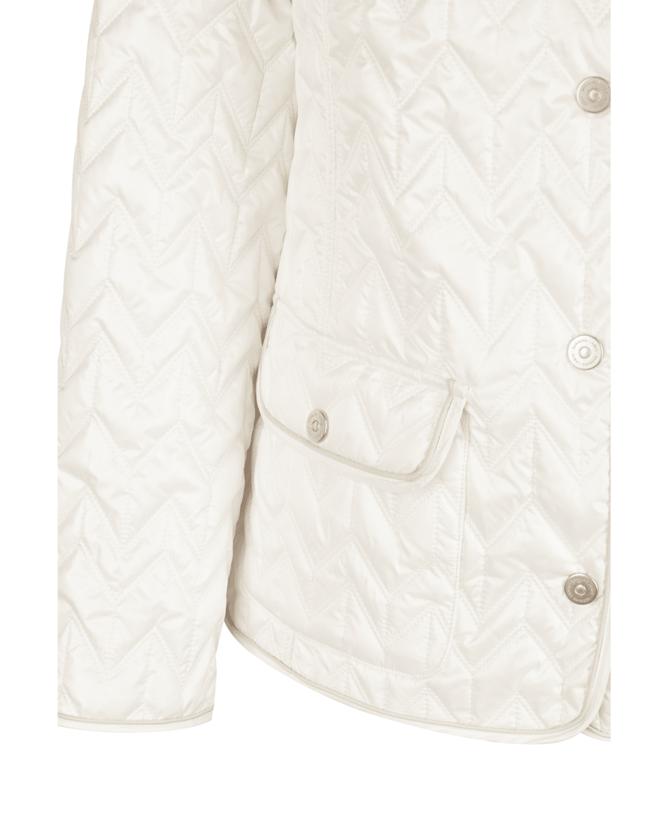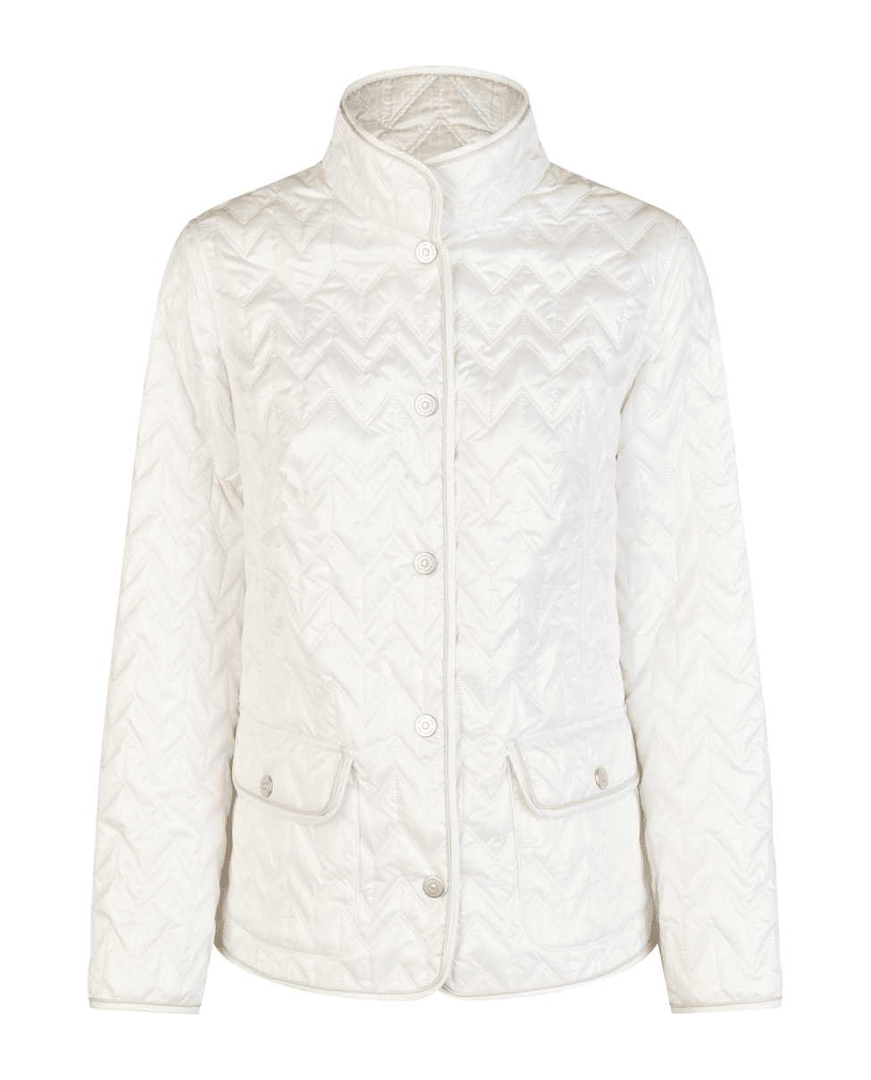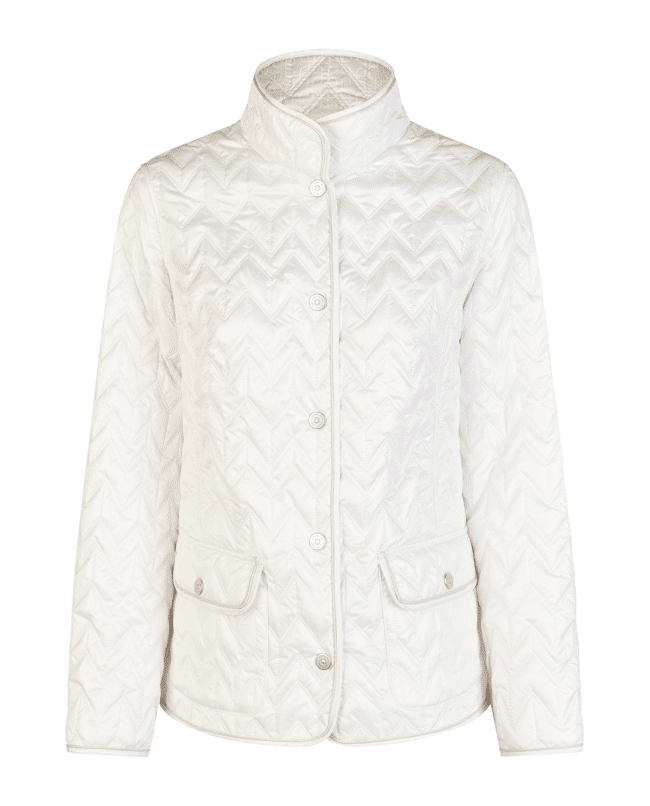 Het zigzag-quiltpatroon geeft deze jas een moderne twist – stijlvol zonder te overdrijven.
