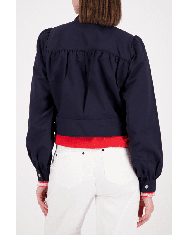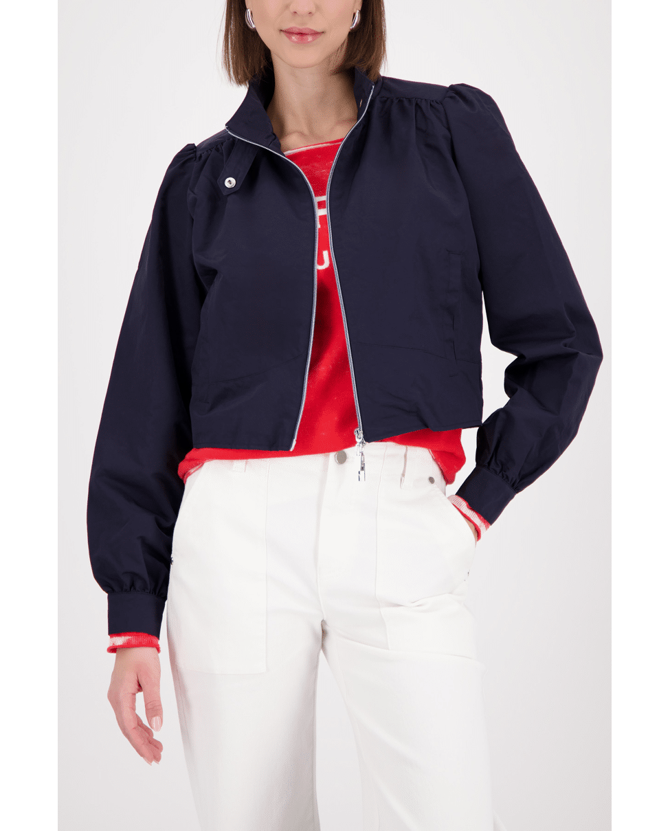 Dames jack van Monari met opstaande kraag, ritssluiting en lange pofmouwen